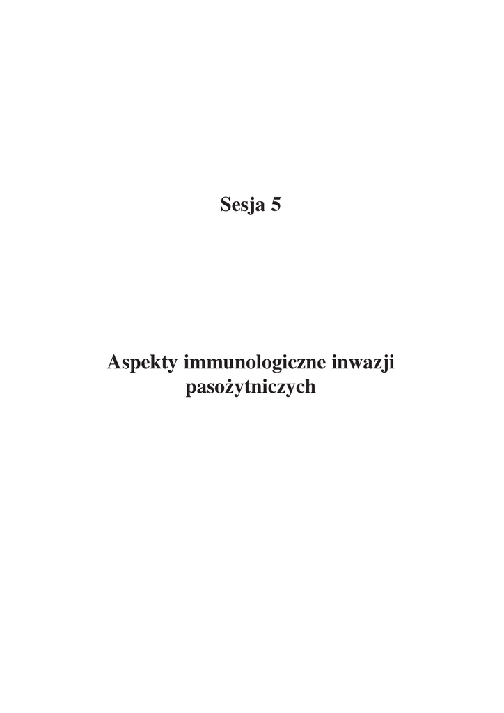Sesja 5 Aspekty immunologiczne inwazji pasożytniczych Wiadomoœci Parazytologiczne 2007, 53 (suplement), 85 Copyright© 2007 Polskie Towarzystwo Parazytologiczne Modulacyjny wpływ inwazji Heligmosomoides polygyrus na przebieg zarażenia Cryptosporidium parvum u myszy C57BL/6 Modulatory effect of Heligmosomoides polygyrus invasion on course of Cryptosporidium parvum infection Małgorzata Bednarska, Anna Bajer i Edward Siński Zakład Parazytologii, Instytut Zoologii, Uniwersytet Warszawski, ul. Miecznikowa 1, 02−096 Warszawa; E−mail: [email protected] Cryptosporidium parvum jest pierwotniakiem stwierdzanym w populacjach dziko żyjących gryzoni, za− zwyczaj u zwierząt zarażonych równocześnie innymi pasożytami. Inwazje te są chroniczne, co sprzyja dłu− gotrwałemu skażaniu środowiska zewnętrznego, a może być uwarunkowane obecnością innych pasożytów. Przeprowadzone badania są pierwszymi próbami prześledzenia koinwazji C. parvum i nicienia H. poly− gyrus w warunkach doświadczalnych. Określono dynamikę zarażenia C. parvum u myszy z inwazją C. pa− rvum, koinwazją C. parvum/H. polygyrus oraz liczbę dorosłych nicieni H. polygyrus w jelicie zarażonych myszy. Jako parametry odpowiedzi immunologicznej oznaczono poziom wytwarzania IFN−γ i odsetek ko− mórek, które go syntetyzują oraz koncentrację IL−12 w śluzówce jelita. W przebiegu zarażenia C. parvum u myszy stwierdzono typową dla tego pierwotniaka infekcję zakończo− ną usunięciem pasożytów z organizmu zarażonych zwierząt. W przebiegu zarażenia C. parvum u myszy z ko− inwazją H. polygyrus po wystąpieniu fazy ostrej inwazji stwierdzono w kolejnych tygodniach chroniczne za− rażenie pierwotniakiem. Poziom IFN−γ badany w mysich splenocytach także był różny w zależności od gru− py eksperymentalnej. Wytwarzanie IFN−γ w grupie myszy z koinwazją nie odbiegało od wartości kontrol− nych i fakt jest przypuszczalnie efektem modulacyjnego działania nicienia i wpływa ostatecznie na przedłu− żenie czasu inwazji C. parvum. Wzrost stężenia IL−12 w śluzówce zanotowano we wszystkich grupach eks− perymentalnych. Badania były finansowane z grantu KBN 6 P04C 097 21 Wiadomoœci Parazytologiczne 2007, 53 (suplement), 86 Copyright© 2007 Polskie Towarzystwo Parazytologiczne Adaptacja metody western−blottingu do badania antygenów larw L1 Hypoderma bovis Adaptation of Western−blott method for examination of Hypoderma bovis larvae antigen Tomasz Cencek Zakład Parazytologii i Chorób Inwazyjnych Państwowego Instystutu Weterynaryjnego — Państwowego Instytutu Ba− dawczego w Puławach, al. Partyzantów 57, 24−100 Puławy; E−mail: [email protected] Proteolityczne enzymy trawienne larw gzów z gatunku Hypoderma bovis są najsilniejszymi antygenami tych pasożytów, a jednocześnie bardzo silnymi immunosupresorami. W badaniach nad właściwościami tych białek i ich wpływem na układ odpornościowy żywicieli szeroko wykorzystywane są techniki elektrofore− tyczne. Szczególnie przydatną jest metoda elektroforezy natywnej umożliwiająca rozdział białek wydzielni− czych larw gzów na 6−8 głównych frakcji. Elektrotransfer na membranę nitrocelulozową tak rozdzielonych białek stwarza jednak trudności i część białek antygenu w ogóle nie ulega przeniesieniu na membranę lub przenoszona jest w stopniu niewystarczającym. W odczynie westernblottingu (WB) brak jest wówczas peł− nej reakcji, a uzyskiwane wyniki analizy densytometrycznej są niedokładne i niepowtarzalne. Celem pracy była taka modyfikacja metody WB, która pozwoliłaby na uzyskiwanie skutecznego transferu białek antyge− nu H. bovis, nieprzenoszonych na membranę metodą klasyczną oraz uzyskiwanie powtarzalnych wyników w reakcjach z surowicą. Dla osiągnięcia tego efektu postanowiono białka antygenu H. bovis rozdzielone me− todą elektroforezy natywnej opłaszczyć SDS−em bezpośrednio w żelu (przed transferem) poprzez jego inku− bację w roztworze zawierającym ten związek. W efekcie przeprowadzonych doświadczeń określono, że optymalna temperatura wiązania SDS z cząsteczkami białek wydzielniczych larw H. bovis wynosi ok. 70°C. Stwierdzono, że inkubacja żelu uzyskanego po elektroforezie natywnej w roztworze SDS w takiej tempera− turze nie wpływa deformująco na ten żel, a skuteczność transferu rozdzielonych białek na membranę nitro− celulozową znacznie wzrasta. W wyniku analizy densytometrycznej odczynu WB (przeprowadzonego z su− rowicami królików immunizownych enzymami trawiennymi larw H. bovis) stwierdzono, że tak opracowana metoda charakteryzuje się niskimi błędami powtarzalności (CV% < 10%). Wiadomoœci Parazytologiczne 2007, 53 (suplement), 87 Copyright© 2007 Polskie Towarzystwo Parazytologiczne Wpływ aktywności enzymatycznej białek zawartych w antygenie Hypoderma bovis na jego immunogenność Influence of enzymatic activity of Hypoderma bovis crude antigen proteins on the immunogenicity of the antigen Tomasz Cencek Zakład Parazytologii i Chorób Inwazyjnych Państwowego Instystutu Weterynaryjnego — Państwowego Instytutu Ba− dawczego w Puławach, al. Partyzantów 57, 24−100 Puławy; E−mail: [email protected] Głównym celem podjętych badań było określenie zależności pomiędzy aktywnością proteolityczną enzy− mów trawiennych larw pierwszego stadium gzów bydlęcych Hypoderma bovis (i związanymi z tym ich wła− ściwościami immunosupresyjnymi) a ich zdolnością wywoływania swoistej odpowiedzi humoralnej u immu− nizowanych zwierząt. Antygen będący przedmiotem badań, zawierający te enzymy, otrzymano z larw L1 H. bovis izolowanych z kanałów kręgowych młodego bydła ubijanego w rzeźni. Poprzez inaktywację PMSF uzyskano antygen zawierający białka o zredukowanej o ok. 90% aktywności enzymatycznej (antygen N). Metodami elektroforetycznymi porównano właściwości tego antygenu z antygenem
