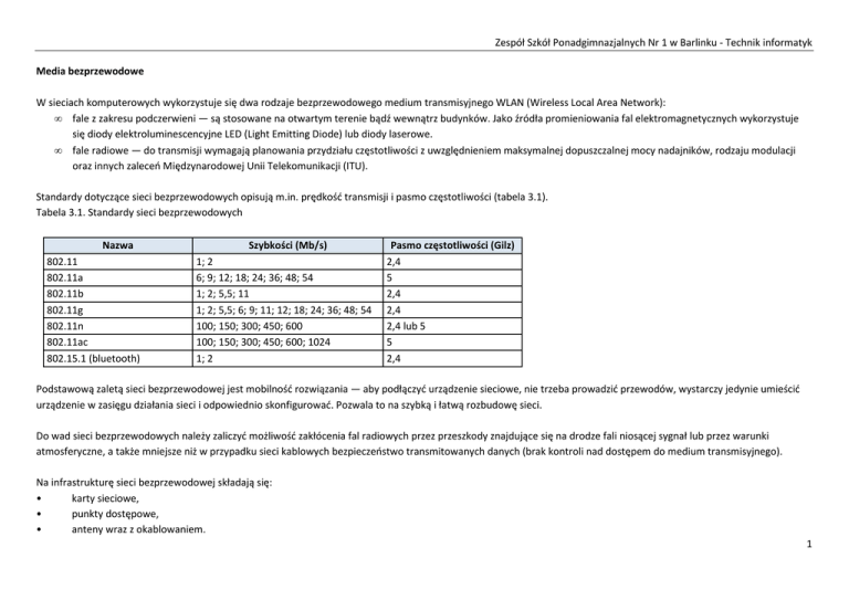 Media bezprzewodowe - Zespół Szkół Ponadgimnazjalnych Nr 1 w