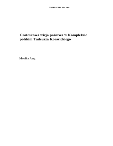 NAPIS SERIA XIV 2008 Groteskowa wizja państwa w Kompleksie polskim Tadeusza Konwickiego Monika Jung 'K A P ^ S Seria XIV 2008 Monika Jung Groteskowa wizja państwa w Kompleksie polskim Tadeusza Konwickiego a początku rozważań nad tą powieścią należy przypomnieć, że Kompleks polski zbudowany jest z kilku płaszczyzn. Pisał o tym Przemysław Czapliński w swojej monografii twórczości Tadeusza Konwickiego. Utwór N tworzyły trzy wzajemnie przeplatające się wątki: fabularny, eseistyczny i paraboliczny. Pierwszy z wątków obejmuje akcję dziejącą się w Polsce schyłku lat siedemdziesiątych [...]. Wątek drugi, eseistyczny, to starannie wplecione w porządek akcji kolejkowej rozważania narratora, który [...] usiłuje wypowiedzieć prawdę naszych kompleksów [...]. Trójkowego ryt mu powieści dopełniały dwa paraboliczne opowiadania i jeden list [...]’. W mojej próbie analizy groteskowej wizji państwa w tytułowym dziele ograniczę się tylko do wątku fabularnego. Ta właśnie warstwa interesuje mnie najbardziej. W niej tragizm przemieszany z zabawą jest najintensywniej uwypuklony. Akcja Kompleksu polskiego toczy się w wigilijny poranek. W kolejce do sklepu „Jubi ler” czeka na dostawę złota ze Związku Radzieckiego przekrój społeczeństwa: Tadeusz Konwicki, Tadeusz Kojran (który po wojnie chodził krok w krok za pisarzem, w celu jego unicestwienia), pan Duszek — były oficer śledczy (który z kolei miał wykonać wy rok na Kojrana), pan Grzesio (który według Duszka był konfidentem). Ponadto w ko lejce stoją także studenci, obcokrajowcy, kobieta w pelisie i inni. Ta mała społeczność brata się w swoisty sposób. Następuje zacieśnianie stosunków pomiędzy niektórymi P Czapliński, Tadeusz Konwicki, Poznań 1994, s. 136-138. 434 Monika Jung współuczestnikami zbiorowego oczekiwania na towar. Kolejkowicze mają możliwość między innymi napicia się wódki czy zakupu cielęciny „spod lady”: — Narzekacie państwo na ogonki popijając whisky — odzywa się z ironią pani w za dużej pelisie2. Złoto jednak nie zostaje dostarczone, w zamian za nie w sklepie „Jubiler” można nabyć radzieckie samowary. Ich zakup daje możliwość uczestniczenia w losowaniu wy cieczki do Związku Radzieckiego: — Proszę państwa — rzecze kierowniczka — proszę o uwagę. Otrzyma łam pismo z dyrekcji. Informuje się naszych miłych klientów o niespo dziance przygotowanej przez centralę. Dokonując zakupów w naszych sklepach, należy przechować paragony. W przyszłym roku zostanie roz losowanych pięć wycieczek do Związku Radzieckiego śród posiadaczy tych paragonów3. Jak na ironię Kojran, który posiada już wizę do Stanów Zjednoczonych — bilet do innej rzeczywistości — otrzymuje zwycięski paragon, który upoważnia go do od bioru nagrody — wyjazdu do Związku Radzieckiego. To nie koniec paradoksalnych zdarzeń. W pewnym momencie oczom bohatera ukazuje się taki obrazek: Od strony ronda nadchodzi wysoka, szczupła kobieta. Patrzę na nią przez mokrą szybę i czuję, że coś jest nie w porządku. W tym zamaszystym kroku, w tym odchyleniu głowy do tyłu, w tej smuklości zadziwiającej domyślam się przejmującej, tragicznej nienormalności. [...] Dopiero teraz widzę, że kobieta, albo raczej dziewczyna, idzie niedbałym kro kiem w długim do kostek perkalowym szlafroku w wielkie chryzantemy, że dwoma palcami unosi poły tego szlafroka jak rąbek balowej sukni i pod połą chryzantemowego szlafroka mieni się różowa jedwabna koszula noc na, a potem nagle spostrzegam grzęznące w śniegu bose stopy, grzęznące jak w piasku plaży [...]4. Widok co najmniej niespotykany o tej porze roku. Zima w pełnej krasie, a po ulicy przechadza się kobieta w szlafroku. Niewytłumaczalność zdarzenia i jego dziwność wzbudza zaciekawienie wśród kolejkowiczów. Iwona pyta Konwickiego: 2 T. Konwicki, Kompleks polski, Warszawa 1989, s. 73. 3 Ibidem, s. 76. 4 Ibidem, s. 84—85. Groteskowa wizja państwa w Kompleksie polskim Tadeusza Konwickiego 435 — Jak pan myśli: dlaczego ta dziewczyna tuż przed wigilią szła w szla froku i boso przez zawieję? — Musiała coś przeżyć, czego nie można przeżyć. — Nikt jej nie ośmielił się zatrzymać. — My też odczuliśmy onieśmielenie, nabożny strach przed ostatecznością5. Błędny wzrok kobiety, która niczym w hipnozie idzie przed siebie, robi wrażenie, jakby słyszała glos prowadzącyją do celu. Czy ten cel istnieje? I wjaki sposób możemy go zdefiniować? Czy nie jest to jednak metafora społeczeństwa zniewolonego? Idą cego za głosem ślepej władzy, która skrzętnie wykonuje wszystkie polecenia wschod niego sąsiada. Powieści Tadeusza Konwickiego przesiąknięte są „autobiograficznym komenta rzem”6. Podobnie jest i w tej książce. Autor w sprytny sposób pokazuje czytelnikom samego siebie, ale chce także poznać własną osobę przez demaskowanie swojego „ja”. Wciela się w postać literacką i jednocześnie w obserwującego narratora, którego można utożsamić z autorem. Dowiadujemy się zatem, że jest literatem pochodzącym z Wileńszczyzny, który brał udział w partyzantce 1945 roku. Wiemy, że ma żonę i dwie córki, a także (tak istotnego w twórczości prozaika) kota Iwana. Jednak bohater Konwickiego, po bolesnych doświadczeniach dwóch totalitaryzmów „dostrzegający nadciąganie wielkiego, globalnego kryzysu”7, na zawsze utraci rozeznanie kierunku, w jakim należy podążać. Proces sowietyzacji wyraźnie odbija się w obrazie komunistycznej rzeczywistości. Przejawia się to w niszczeniu poczucia od powiedzialności i odruchów moralnych, w złym funkcjonowaniu instytucji, zacieraniu pamięci kulturowej oraz prostytuowaniu języka8. W efekcie normą porozumienia staje się kamuflaż, mistyfikacja i nieufność. Objawia się to również w sferze uczuć i popę dów seksualnych. Nikogo tu nie dziwi, że zamiast szykować się do