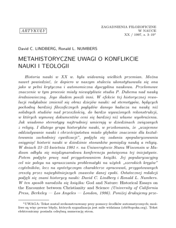 METAHISTORYCZNE UWAGI O KONFLIKCIE NAUKI I TEOLOGII