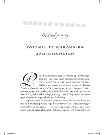 Rozdział pierwszy EGZAMIN ZE WSPOMNIEŃ ZAMIERZCHŁYCH P onad dwadzieścia pięć lat wcześniej, dwunastego grudnia 1933 roku, setki podekscytowanych mni chów tłoczyły się na jednym z brukowanych dzie dzińców na terenie ogromnego zimowego Pałacu Potala, a ich oddechy wyraźnie rysowały się w rozrzedzonym powie trzu na wysokości trzech tysięcy siedmiuset metrów nad poziomem morza. Przybyli na doroczną audiencję u XIII Dalajlamy – niezłom nego wizjonera i poprzednika XIV Dalajlamy. Gdy odziani w bordowe szaty mnisi weszli do sali spotkań, nie ujrzeli niewielkiej postury Jego Świątobliwości XIII Dalajlamy i jego przenikliwego spojrzenia – ich oczy napotkały jedynie jego szatę przewieszoną przez złoty tron. Okazało się, że Jego Świątobliwość 7 ucieczka.indb 7 30.09.2012 23:40 UCIECZKA Z KRAINY WIECZNEGO ŚNIEGU nie czuje się na siłach, by udzielić im audiencji, toteż mnisi będą mieli jedynie możliwość obcowania z jego odzieniem. Ceremonia ta w Tybecie nosi nazwę „zapraszania szat”. Jeden z mnichów zaczął łkać. Od kilku dni po mieście krążyła wiadomość, że dalajlama za chorował na grypę lub podobną przypadłość. Ten płaczący mnich czuł instynktownie, że Jego Świątobliwość stoi u progu śmierci. Jego obawy potwierdziły się pięć dni później, gdy dalajlama od szedł śmiercią naturalną. Wiadomość tę obwieścili społeczeństwu tan cerze na dachu Pałacu Potala, poruszając się w rytm smutnych tonów wybijanych na tradycyjnych bębenkach zwanych damaru, a także opalane masłem lampki rozstawione wokół pałacu, które w Tybecie symbolizują śmierć. Cały lud pogrążył się w żałobie, nie kryjąc swego smutku i płacząc rzewnie na ulicach Lhasy. Każdy dalajlama niejako na nowo definiuje tę instytucję, a XIII Dalajlama, który zasiadał na tronie przez pięćdziesiąt cztery lata, ustawił poprzeczkę bardzo wy soko. Był przystojnym mężczyzną z ogoloną głową, przejmującym spojrzeniem i twarzą zdobną w cienki wąs. Jego oficjalne portrety odbiegają znacznie od podobizny Buddy jako wcielenia spokoju, ukazując raczej tybetańskiego księcia, dobrze znającego się na poli tyce strachu i odwetu. To on właśnie wprowadził swój lud w okres względnej niepodległości i był przez ludzi bardzo kochany. Stare porzekadło głosi, że gdy spotka się dwóch Tybetańczyków, wkrótce powstaną z tego trzy partie polityczne. Tybetańczycy znani są z zamiłowania do intryg politycznych, a w Pałacu Potala ście rały się konkurujące ze sobą kliki. Toczono walki o władzę, a zda rzało się nawet, że wewnętrzne spory miewały śmiertelne skutki. XIII Dalajlama poruszał się z wprawą po niebezpiecznych mean drach polityki. W chwili objęcia przez niego tronu w 1878 roku, zazdrosny regent sięgnął nawet po czarną magię, by pozbyć się 8 ucieczka.indb 8 30.09.2012 23:40 E G Z A M I N Z E W S P O M N I E Ń Z A M I E R Z C H ŁY C H nowego władcy; umieścił w pięknie wykonanych butach dalajlamy „czarną mantrę”, po czym przekazał je innemu potężnemu lamie, by ten dodatkowo wzmocnił ich morderczą moc. Spisek wykryto i XIII Dalajlama uniknął śmierci, a pazernego na władzę regenta kazał utopić w ogromnej miedzianej kadzi. Czyn ten stanowi przy kład nierzadkich przejawów jego bezwzględnej natury, ale faktem jest, że trzeba było wykazać się niezłomnością charakteru, by prze trwać w Pałacu Potala. Wielką życiową misją XIII Dalajlamy było unowocześnie nie Tybetu i wprowadzenie go do grona krajów niepodległych. Twierdził, że odwieczny wróg Tybetu – Chiny – powróci, i to potęż niejszy niż kiedykolwiek, i że jego naród, zacofany i skrajnie izola cjonistyczny, okaże się dla wielkiego sąsiada bardzo łatwym łupem. Zanim jeszcze odszedł z tego świata, oczywiste było, że jego misja się nie powiodła. Przywódcy największych tybetańskich klasztorów obawiali się, że otwarcie Tybetu na świat będzie oznaczało koniec dominującej roli Tybetu jako kraju strzegącego Dharmy. Dla nich nowoczesność i ateizm były pojęciami jednoznacznymi. Ludzi z zachodu nazywano tendra – wrogami wiary, ludzi oraz instytucji krzewiących wiarę. Jeden z mnichów pamięta nawet, jak uczono go w dzieciństwie, że najświętszym miejscem na ziemi są Indie, a „wszystkich innych należy się obawiać”. W Tybecie dozwolone było nawet zabijanie intruzów, by uchronić kraj przed skażeniem. XIII Dalajlama lękał się, jaki los czeka jego kraj. Testament, który pozostawił elicie Tybetu i swemu ewentualnemu następcy, nazywany jest przez pewnych ludzi boską przepowiednią. Gdy się jednak weń wczytać uważnie, okazuje się, że jest to wyjątkowo trzeźwa analiza politycznego położenia Tybetu na tle Azji i surowa przestroga przed tym, co niesie przyszłość. W tych słowach objawia 9 ucieczka.indb 9 30.09.2012 23:40 UCIECZKA Z KRAINY WIECZNEGO ŚNIEGU się ogromny polityczny talent poprzednika XIV Dalajlamy, jasno przepowiadającego zbliżającą się katastrofę: Przede wszystkim musimy wystrzegać się barbarzyńskich ko munistów, którzy stosują przemoc i niszczą wszystko, gdzie tylko przyjdą. Oni są najgorsi. Wzniecili pożar w Mongolii i unurzali w krwi większą część tego kraju. (...) Okradli i zniszczyli klasztory, wcielili siłą mnichów do wojska lub zabili ich na miejscu. (…) Komuniści staną wkrótce u na szych bram (…) i musimy być przygotowani do obrony, aby nasze tradycje duchowe i kulturowe nie uległy zniszczeniu na zawsze. Zarówno imiona dalajlamów i panczenlamów, jak i depozytariuszy wiary oraz chwalebnych wcieleń zostaną zapomniane. Klasztory będą grabione i obrócą się w popiół, a mnisi i mniszki zostaną wygnani lub zabici. (…) Będziemy niewolnikami naszych zdobywców. (…) Czas będzie biegł powoli w niewyobrażalnym ucisku. (…) Stosujmy pokojowe metody, jeżeli okażą się wystarcza jące, le