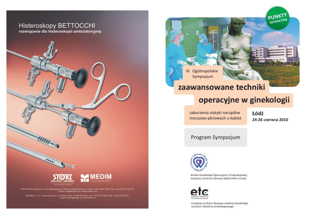 KTYE PUN KACYJN EDU III Ogólnopolskie Sympozjum zaawansowane techniki operacyjne w ginekologii zaburzenia statyki narządów moczowo-płciowych u kobiet Program Sympozjum Klinika Ginekologii Operacyjnej I Endoskopowej Instytutu Centrum Zdrowia Matki Polki w Łodzi Fundacja na Rzecz Rozwoju Łódzkiej Ginekologii Centrum Szkolenia Endoskopowego Łódź 24-26 czerwca 2010 Mapa Łodzi Sponsor Główny GDAŃSK POZNAŃ WARSZAWA ŁOWICZ POZNAŃ Sponsor Platynowy B WARSZAWA RAWA MAZOWIECKA H8 H5 LUBLIN RADOM H1 H6 KALISZ H4 H2 H7 LEGENDA: H1 H2 H3 H3 WROCŁAW Sponsor Złoty H4 H5 KATOWICE KRAKÓW H6 H7 H8 B Plan sytuacyjny budynku położniczo-ginekologicznego ICZMP Sponsor Srebrny VIP VIP SALA A SALA B HOL GŁÓWNY SZATNIA BIURO AULA Sponsor Brązowy ICZMP ul. Rzgowska 281/289 Grand ul. Piotrkowska 72 Ibis ul. Piłsudskiego 11 Ambasador ul. Kosynierów Gdyńskich 8 Qubus ul. Mickiewicza 7 Mazowiecki ul. Strzelców Kaniowskich 53/57 Fokus ul. Łąkowa 23/25 Campanile al. Piłsudskiego 27 Centrum ul. Kilińskiego 59/63 Pałac Biedermanna ul. Franciszkańska 1/5 WEJŚCIE SALA C Informacje o Łodzi Początki Łodzi sięgają XIII wieku, od XV w. Łódź posiada prawa miejskie. Historia przebiegała z okresami wzlotów i upadków, od okresu zaborów, gdzie były nawet plany pozbawienia Łodzi praw miejskich do czasów eksplozji ekonomicznej, demograficznej i kulturowej miasta „ziemi obiecanej”. Niecałe sto lat uczyniło z Łodzi potężny ośrodek przemysłowy, wielokulturowy i naukowy. Świetność miasta przypada na koniec XIX wieku. Fabryki, budowle sakralne, pałace, kamienice i domy robotnicze są pamiątkami czasów i przemiany miasta. W Łodzi jest największy w Polsce zespół dziewiętnastowiecznej architektury. Znajdziemy wśród nich wybitne przykłady secesji. Wielkie, budowane z cegły przędzalnie i tkalnie to charakterystyczne motywy łódzkiej architektury. Główną ulicą, a zarazem wizytówką Łodzi była i jest Piotrkowska, dawny trakt z Łęczycy do Piotrkowa Trybunalskiego, jedna z najdłuższych, ale i najpiękniejszych ulic w Polsce. Łódź to także miasto, w którym liczne imprezy kulturalne wzajemnie przeplatają się, a otwarty charakter festiwali i spotkań artystycznych oddaje wielokulturową historię miasta. Ze względu na odbywające się targi interesująca jest też dla przedstawicieli biznesu. Łódź jest uznanym i silnym ośrodkiem naukowym i akademickim. Warto skorzystać z bogatej oferty restauracji i kafejek oraz znanych w całej Polsce klubów. Kuchnia i trunki w nich serwowane mogą zadowolić najbardziej wybrednych smakoszy, a tętniące całą noc miasto na długo pozostaje w pamięci. Telefony / phone numbers Numer kierunkowy - Łódź / Direct number - Łódź: +48 42 Centrum Informacji Turystycznej / Tourist Information Centre - 638 59 55, 638 59 56 Centrum Informacji Kulturalnej / Cultural Information Centre - 633 92 21 Informacja Lotnicza LOT / Airline Information - 0 801 300 952 Informacja MPK / City Bus & Tram Information - 672 11 12 Informacja PKS / Long-Distance Bus Information - 631 97 06, 93 16 Informacja Kolejowa PKP-Łódź Kaliska / Train Information Kaliska - 205 44 08 Informacja Kolejowa PKP-Łódź Fabryczna / Train Information Fabryczna - 205 59 39 Pogotowie Ratunkowe / Ambulance - 999 Policja / Police - 997 Straż Miejska / City Guard - 986 Straż Pożarna / Fire Brigade - 998 Biuro Numerów / Directory Enquires - 118 913 14 ZAAWANSOWANE TECHNIKI OPERACYJNE W GINEKOLOGII ZABURZENIA STATYKI NARZĄDÓW MOCZOWO-PŁCIOWYCH U KOBIET ŁÓDŹ 24-26 CZERWCA 2010 III Ogólnopolskie Sympozjum Zaawansowane techniki operacyjne w ginekologii Zaburzenia statyki narządów moczowo-płciowych u kobiet 24-26 czerwca 2010 Instytut Centrum Zdrowia Matki Polki Łódź Klinika Ginekologii Operacyjnej I Endoskopowej Instytutu Centrum Zdrowia Matki Polki w Łodzi Sekcja Ginekologii Operacyjnej Polskiego Towarzystwa Ginekologicznego Uniwersytet Medyczny w Łodzi Fundacja na Rzecz Rozwoju Łódzkiej Ginekologii Centrum Szkolenia Endoskopowego ZAAWANSOWANE TECHNIKI OPERACYJNE W GINEKOLOGII ZABURZENIA STATYKI NARZĄDÓW MOCZOWO-PŁCIOWYCH U KOBIET ŁÓDŹ 24-26 CZERWCA 2010 3 Szanowni Państwo, Drodzy Uczestnicy Sympozjum, Zaproszeni Goście W imieniu Komitetu Organizacyjnego mam zaszczyt powitać na Sympozjum - Zaawansowane techniki operacyjne w ginekologii zaburzenia statyki narządów moczowo-płciowych u kobiet. Już po raz trzeci mam przyjemność zaprosić Państwa do Łodzi, do Instytutu Centrum Zdrowia Matki Polki na Sympozjum „Zaawansowane Techniki Operacyjne w Ginekologii” - tym razem poświęcone operacjom w zaburzeniach statyki narządów moczowo-płciowych u kobiet. Podczas Sympozjum wybitni naukowcy i praktycy przybliżą wiele problemów związanych z operacjami pochwowymi i laparoskopowymi. Integralną częścią Sympozjum będą transmisje na żywo operacji laparoskopowych i pochwowych równocześnie z trzech sal operacyjnych oraz warsztaty operacyjne dotyczące technik szycia i wiązania w laparoskopii oraz technik pochwowych w leczeniu zaburzeń statyki narządów moczowo-płciowych. Przewodniczący Komitetu Organizacyjnego Prof. dr hab. med. Andrzej Malinowski Zaproszeni wykładowcy zagraniczni Revaz Botchorishvili - Clermont-Ferrand (Francja) Igor Gladczuk - Odessa (Ukraina) Mohamed Hefni - Benenden (Wielka Brytania) Jacek Kociszewski - Hagen (Niemcy) Aleksandr Popov - Moskwa (Rosja) Stefan Smajda - Bruksela (Belgia) Peter von Theobald - Caen (Francja) Tematyka sympozjum Przygotowanie pacjentki do operacji uroginekologicznej Operacje pochwowe w zaburzonej statyce narządów moczowo-płciowych Techniki laparoskopowe w zaburzonej statyce narządów moczowo-płciowych Kontrowersje w leczeniu nietrzymania moczu „Gorące”problemy w uroginekologii 4 ZAAWANSOWANE TECHNIKI OPERACYJNE W GINEKOLOGII ZABURZENIA STATYKI NARZĄDÓW MOCZOWO-PŁCIOWYCH U KOBIET ŁÓDŹ 24-26 CZERWCA 2010 Zakwaterowanie Rezerwacja i opłata noclegu pozostaje