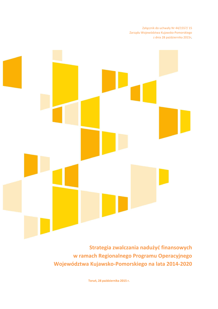 Załącznik do uchwały Nr 44/1557/ 15 Zarządu Województwa Kujawsko-Pomorskiego z dnia 28 października 2015r. Strategia zwalczania nadużyć finansowych w ramach Regionalnego Programu Operacyjnego Województwa Kujawsko-Pomorskiego na lata 2014-2020 Toruń, 28 października 2015 r. Spis treści 1. Wykaz aktów prawa ............................................................................................................................ 2 2. Skróty................................................................................................................................................... 4 3. Wstęp (zakres i cel Strategii, w tym deklaracja IZ RPO WK-P) ............................................................ 4 4. Definicje i charakterystyka najczęściej identyfikowanych nadużyć finansowych w wykorzystywaniu środków unijnych .................................................................................................................................... 7 4.1 Nieprawidłowości.......................................................................................................................... 7 4.2 Nadużycia finansowe .................................................................................................................... 7 4.3 Korupcja ........................................................................................................................................ 8 4.4 Konflikt interesów ......................................................................................................................... 9 4.5 Zmowa przetargowa ................................................................................................................... 10 4.6 Fałszerstwo ................................................................................................................................. 12 5. Działania w zakresie walki z nadużyciami finansowymi .................................................................... 13 5.1 Zapobieganie ............................................................................................................................... 14 5.2 Wykrywanie ................................................................................................................................ 18 5.3 Zgłaszanie, ściganie i ochrona sygnalistów ................................................................................. 19 5.4 Korygowanie ............................................................................................................................... 21 6. Gdzie szukać informacji na temat nadużyć finansowych .................................................................. 23 1 1. Wykaz aktów prawa W zakresie ustawodawstwa unijnego: Rozporządzenie Rady (WE, Euratom) nr 2988/95 z dnia 18 grudnia 1995 r. w sprawie ochrony interesów finansowych Wspólnot Europejskich (Dz. U. UE L 312 z dnia 23 grudnia 1995 r., s. 1); Porozumienie międzyinstytucjonalne z dnia 25 maja 1999 r. między Parlamentem Europejskim, Radą Unii Europejskiej i Komisją Wspólnot Europejskich dotyczące dochodzeń wewnętrznych prowadzonych przez Europejski Urząd ds. Zwalczania Nadużyć Finansowych (OLAF) (Dz. U. UE L 136 z dnia 31 maja 1999 r., s. 15-19); Rozporządzenie Parlamentu Europejskiego i Rady (UE, EURATOM) nr 883/2013 z dnia 11 września 2013 r. dotyczące dochodzeń prowadzonych przez Europejski Urząd ds. Zwalczania Nadużyć Finansowych (OLAF) oraz uchylające rozporządzenie (WE) nr 1073/1999 Parlamentu Europejskiego i Rady i rozporządzenie Rady (Euratom) nr 1074/1999 (Dz. U. UE L 248 z dnia 18 września 2013 r., s. 1); Rozporządzenie (WE) nr 1073/99 Parlamentu Europejskiego i Rady z dnia 25 maja 1999 r. dotyczące dochodzeń prowadzonych przez Europejski Urząd ds. Zwalczania Nadużyć Finansowych (OLAF) (Dz. U. WE L 136 z 31 maja 1999 r., s. 1); Rozporządzenie Rady (Euratom) nr 1074/99 z dnia 25 maja 1999 r. dotyczące dochodzeń prowadzonych przez Europejski Urząd ds. Zwalczania Nadużyć Finansowych (OLAF) (Dz. U. WE L 136 z 31 maja 1999 r., s. 8, PWS rozdz. 1, t. 3, s. 98); Rozporządzenie Parlamentu Europejskiego i Rady (UE, Euratom) nr 966/2012 z dnia 25 października 2012 r. w sprawie zasad finansowych mających zastosowanie do budżetu ogólnego Unii oraz uchylające rozporządzenie Rady (WE, Euratom) nr 1605/2002, (Dz. U. UE L 298 z dnia 26 października 2012 r., s. 1 z późn. zm.) zwane dalej „rozporządzeniem finansowym”; Rozporządzenie delegowane Komisji (UE) nr 1268/2012 z dnia 29 października 2012 r. w sprawie zasad stosowania rozporządzenia Parlamentu Europejskiego i Rady (UE, Euratom) nr 966/2012 w sprawie zasad finansowych mających zastosowanie do budżetu ogólnego Unii ( Dz. U. UE L 362 z dnia 31 grudnia 2012 r., s. 1-111); Rozporządzenia Parlamentu Europejskiego i Rady (UE) nr 1303/2013 z dnia 17 grudnia 2013 r. ustanawiającego wspólne przepisy dotyczące Europejskiego Funduszu Rozwoju Regionalnego, Europejskiego Funduszu Społecznego, Funduszu Spójności, Europejskiego Funduszu Rolnego na rzecz Rozwoju Obszarów Wiejskich oraz Europejskiego Funduszu Morskiego i Rybackiego objętych zakresem Wspólnych Ram Strategicznych oraz ustanawiającego przepisy ogólne dotyczące Europejskiego Funduszu Rozwoju Regionalnego, Europejskiego Funduszu Społecznego i Funduszu Spójności, oraz uchylające rozporządzenie (WE) nr 1083/2006 (Dz. U. UE L 347 z dnia 20 grudnia 2013 r., s. 320-469 z późn. zm ), zwanego dalej „rozporządzeniem ogólnym”; Wytyczne (KE) dla państw członkowskich i instytucji wdrażających programy - Ocena ryzyka nadużyć finansowych oraz skuteczne i proporcjonalne środki zwalczania nadużyć finansowych, z dnia 16 czerwca 2014 r. (EGESIF_14-021-00-16/06/2014), zwane dalej „Wytycznymi KE”; Konwencja o ochronie interesów finansowych Wspólnot Europejskich, sporządzona w Brukseli dnia 26 lipca 1995 r. (Dz. U. z 1995 r. nr 208, poz. 1603) 2 W zakresie usta