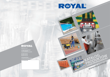 ROYAL Sp. z o.o. ul. Marii Konopnickiej 7 11-320 Jeziorany woj. warmińsko-mazurskie tel. 89 7181 472 tel. 89 7181 474 fax 89 7181 135 www.royal.info.pl e-mail: [email protected] DYSTRYBUTOR: G W O L Ó EJ T A N L T K A U K ODOFESJONA pl PCHREMII PR al.info. w y o r . ww www.royal.info.pl Legenda Szanowni Państwo, Firma ROYAL Sp. z o.o. powstała w 1990 roku. Przez 6 lat siedziba firmy mieściła się w Gietrzwałdzie, a od 1996 roku Zarząd firmy oraz zakład produkcyjny znajdują się w Jezioranach. Początkowo firma ROYAL była spółką Joint Venture, zajmowała się importem i konfekcjonowaniem kosmetyków, chemii gospodarczej i motoryzacyjnej. Zdobyte doświadczenie i odpowiednie technologie pozwoliły na uruchomienie w niedługim czasie kompletnej produkcji chemii profesjonalnej. Obecnie wszystkie produkty są wytwarzane w Polsce. Główne linie produktów to: • CLEANING - profesjonalne środki czystości przeznaczone dla firm sprzątających; • GASTRO - wysokowydajne preparaty dla przemysłu spożywczego i gastronomii; • CAR WASH - chemia do myjni samochodowych; • PORTABLE TOILETS - środki chemiczne do bezodpływowych systemów sanitarnych, zarówno wolnostojących typu TOI TOI, jak i kasetowych urządzeń sanitarnych w toaletach turystycznych, autokarach, jachtach itp.; • OGRODNICTWO - preparaty dla ogrodnictwa; • POOLMAN - chemia basenowa. mycie ręczne przemysł mycie ręczne ze spryskiwaczem maszyny i urządzenia przemysłowe sprzęt ręczny posadzki twarde mop płaski dywany i wykładziny maszyny jednotarczowe pomieszczenia biurowe, meble, sprzęt biurowy urządzenia wysokociśnieniowe myjnie ręczne odkurzacze piorące myjnie automatyczne mycie okien autobusy polerki przyczepy campingowe zmywarki do posadzek jachty samochody osobowe samochody ciężarowe wagony kolejowe podnoszenie pH wody tramwaje obniżanie pH wody felgi usuwanie tłustych osadów na linii wodnej przenośne kabiny toaletowe dezynfekcja wody pomieszczenia sanitarne koagulacja zanieczyszczeń muszle klozetowe pH pH Wykwalifikowana kadra i własne laboratorium pozwalają nam na wprowadzanie nowych produktów oraz stałą kontrolę nad jakością oferowanych wyrobów. Odpowiedni park maszynowy oraz własny transport pomagają nam spełnić wysokie oczekiwania naszych odbiorców. Chętnie podejmujemy wyzwania tworząc produkty pod marką własną klienta. Wszystkie produkty firmy ROYAL posiadają niezbędną dokumentację techniczną. Na rynku polskim działamy poprzez sieć regionalnych przedstawicielstw, część produktów jest sprzedawana także na rynki Unii Europejskiej i Europy Wschodniej. umywalki i armatura sanitarna wanny z hydromasażem higiena rąk W dbałości o zadowolenie naszych klientów i ciągłe podnoszenie jakości zarządzania, obsługi klientów oraz jakości produktów, w 2005 roku wprowadziliśmy system zarządzania jakością wg normy ISO 9001:2000. Każdego roku poddajemy firmę audytowi zewnętrznemu, w celu dostosowania systemu zarządzania jakością do aktualnie obowiązujących norm. działanie przeciwbakteryjne kuchnie i gastronomia naczynia kuchenne zmywarki do naczyń Z poważaniem Hanna Muddemann Prezes Zarządu maszyny do lodów i bitej śmietany Royal Sp. z o.o. w ramach prowadzonej polityki stałego udoskonalania sprzedawanych produktów zastrzega sobie prawo do wprowadzania zmian w asortymencie i specyfikacjach technicznych produktów. W celu uzyskania najbardziej aktualnych informacji prosimy o skontaktowanie się z naszym bezpośrednim przedstawicielem. CLEANING CLEANING RO-1 Scheuer Milch pH 8 RO-12 Pers pH 6 PRZEZNACZENIE: Bardzo wydajny preparat w postaci mleczka, przeznaczony do czyszczenia powierzchni emaliowanych, aluminiowych, ceramicznych oraz ze stali nierdzewnej. Nie rysuje czyszczonej powierzchni. Przeznaczony dla firm sprzątających i gospodarstw domowych. PRZEZNACZENIE: Preparat przeznaczony do ręcznego prania powierzchni tekstylnych naturalnych i syntetycznych, dywanów, wykładzin dywanowych, mebli z tapicerką. Preferowany do powierzchni wełnianych. Delikatny dla włókien, nie zawiera wybielaczy optycznych i rozpuszczalników. SPOSÓB UŻYCIA: Produkt gotowy do użycia. Przed użyciem wstrząsnąć. Nanieść preparat na czyszczoną powierzchnię. Czyścić wilgotną gąbką lub ściereczką, następnie spłukać czystą wodą. SPOSÓB UŻYCIA: 500 - 1500 ml / 10 L wody. Usunąć odkurzaczem luźne zabrudzenia, nanieść preparat na czyszczoną powierzchnię, czyścić mechanicznie gąbką lub szczotką, następnie osuszyć materiałem dobrze chłonącym wilgoć. Po całkowitym wysuszeniu wyszczotkować powierzchnię. RO-3 Mydło pH 6 PRZEZNACZENIE: Mydło do mycia rąk i ciała. Dzięki zawartości gliceryny jest łagodne dla skóry, posiada dobre właściwości myjące. SPOSÓB UŻYCIA: Produkt gotowy do użycia. Rozprowadzić niewielką ilość mydła, następnie spłukać wodą. Do dozowania stosowac pojemniki z dispenserami. RO-17 Cleaner pH 6 PRZEZNACZENIE: Preparat myjący na bazie mydła, przeznaczony przede wszystkim do podłóg odpornych na działanie wody. Preferowany do PCV, linoleum, kamienia nieszlifowanego, klinkieru, lakierowanego parkietu, korka, gumy. Zapobiega powstawaniu śladów, posiada właściwości antystatyczne i antypoślizgowe. Polecany dla firm sprzątających i gospodarstw domowych. Może być stosowany w zakładach przemysłu spożywczego. SPOSÓB UŻYCIA: 20 - 50 ml / 10 L wody. Podłogę wrażliwą na działanie wody po wyczyszczeniu należy wytrzeć do sucha. RO-3L Mydło Lux pH 6 PRZEZNACZENIE: Kremowe mydło do rąk i ciała. Posiada dobre właściwości myjące, jest łagodne dla skóry. Zawarta w nim gliceryna kosmetyczna doskonale nawilża skórę i zabezpiecza ją przed pękaniem i wysuszaniem. Posiada przyjemny zapach. SPOSÓB UŻYCIA: Produkt gotowy do użycia. Rozprowadzić niewielką ilość mydła, nastepnie spłukać wodą. Do dozowania stosować pojemniki z dispenserami. RO-3R Mydło ROY p