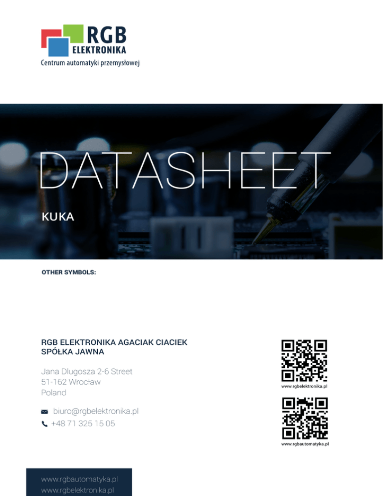 DATASHEET KUKA OTHER SYMBOLS: RGB ELEKTRONIKA AGACIAK CIACIEK SPÓŁKA JAWNA Jana Dlugosza 2-6 Street 51-162 Wrocław Poland www.rgbelektronika.pl [email protected] +48 71 325 15 05 www.rgbautomatyka.pl www.rgbautomatyka.pl www.rgbelektronika.pl YOUR PARTNER IN MAINTENANCE Repair this product with RGB ELEKTRONIKA LINEAR ENCODERS ORDER A DIAGNOSIS ∠ PLC SYSTEMS INDUSTRIAL COMPUTERS ENCODERS CNC CONTROLS SERVO AMPLIFIERS MOTORS CNC MACHINES OUR SERVICES SERVO DRIVERS POWER SUPPLIERS OPERATOR PANELS At our premises in Wrocław, we have a fully equipped servicing facility. Here we perform all the repair works and test each later sold unit. Our trained employees, equipped with a wide variety of tools and having several testing stands at their disposal, are a guarantee of the highest quality service. Buy this product at RGB AUTOMATYKA BUY ∠ KUKA Robot Group Controller KR C2 edition05 Instrukcja obsługi Stan: 25.09.2006 Wersja: 1.1 V1.1 25.09.200 KR C2 edition05 © Copyright 2006 KUKA Roboter GmbH Zugspitzstraße 140 D-86165 Augsburg Niemcy Niniejsza dokumentacja może być powielana i udostępniana osobom trzecim – także we fragmentach – wyłącznie za jednoznaczną zgodą KUKA ROBOT GROUP. Układ sterowania może posiadać dalsze, nie opisane w niniejszej dokumentacji funkcje. Przy dostawie nowego układu sterowania i/lub w przypadku serwisowym klient nie ma jednak prawa żądać udostępnienia mu tych funkcji. Treść publikacji została sprawdzona pod względem zgodności z opisanym osprzętem i oprogramowaniem. Mimo to nie jest możliwe całkowite wykluczenie różnic, w związku z czym nie gwarantujemy całkowitej zgodności dokumentacji ze stanem faktycznym. Informacje zawarte w niniejszej publikacji są jednak regularnie sprawdzane, a wymagane poprawki są uwzględniane w kolejnych wydaniach. Zastrzega się możliwość wprowadzania zmian technicznych, nie mających wpływu na działanie produktu. KIM-PS4-DOC V0.4 2 / 149 22.03.200 6 pub de V1.1 25.09.2006 KRC-AD-KRC2ed05-BA pl Spis tresci Spis tresci 1 Wstęp ................................................................................................................ 7 1.1 Grupa docelowa .............................................................................................................. 7 1.2 Dokumentacja systemu robota ....................................................................................... 7 1.3 Symbole wskazówek ...................................................................................................... 7 1.4 Stosowane pojęcia .......................................................................................................... 8 2 Opis produktu .................................................................................................. 9 2.1 Przegląd systemu robota ................................................................................................ 9 2.2 Układ sterowania robota Đ zestawienie .......................................................................... 9 2.3 Opis komputera układu sterowania ................................................................................ 10 2.3.1 Standardowe złącza PC ............................................................................................ 11 2.3.2 Przyporządkowanie wtyczek komputera .................................................................... 13 2.3.3 Płyta główna .............................................................................................................. 13 2.3.4 Twardy dysk ............................................................................................................... 14 2.3.5 Napęd CD-ROM ........................................................................................................ 15 2.3.6 Napęd dyskietek ........................................................................................................ 15 2.3.7 Karta wielofunkcyjna (MFC3) ..................................................................................... 15 2.3.8 Cyfrowy serwomoduł elektroniczny (DSE-IBS-C33) .................................................. 16 2.3.9 Karta KUKA VGA (KVGA) ......................................................................................... 17 2.3.10 Akumulatory ............................................................................................................... 17 2.4 Opis panelu sterowniczego KUKA Control Panel (KCP) ................................................ 18 2.4.1 Strona przednia ......................................................................................................... 18 2.4.2 Strona tylna ............................................................................................................... 19 Logiczny układ bezpieczeństwa Electronic Safety Circut (ESC) .................................... 19 2.5 2.5.1 Węzły ESC ................................................................................................................. 21 2.5.2 Płyty CI3 - zestawienie .............................................................................................. 23 2.5.3 Płyta CI3-Standard .................................................................................................... 23 2.5.4 Płyta CI3-Extended .................................................................................................... 26 2.5.5 Płyta CI3 Bus ............................................................................................................. 28 2.5.6 Płyta CI3-Tech ........................................................................................................... 31 Opis modułu zasilającego ............................................................................................... 34 2.6.1 Zasilacz mocy KPS600 .............................................................................................. 35 2.6.2 Bezpieczniki ...............................