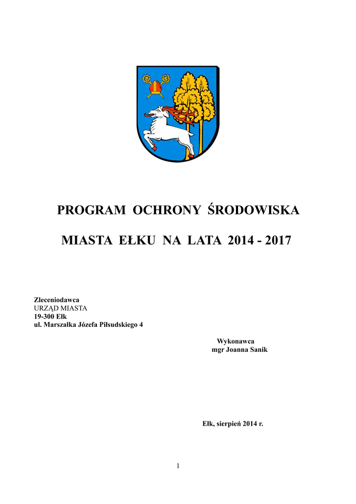 PROGRAM OCHRONY ŚRODOWISKA MIASTA EŁKU NA LATA 2014 - 2017 Zleceniodawca URZĄD MIASTA 19-300 Ełk ul. Marszałka Józefa Piłsudskiego 4 Wykonawca mgr Joanna Sanik Ełk, sierpień 2014 r. 1 Spis treści I. Wstęp.................................................................................................................................................3 II. Charakterystyka środowiska miasta Ełk........................................................................................11 2.1 Położenie administracyjne i fizyczno - geograficzne.............................................................11 2.2 Budowa geologiczna i zasoby geologiczne.............................................................................13 2.3 Rzeźba terenu...........................................................................................................................14 2.4 Warunki klimatyczne...............................................................................................................14 2.5 Gleby........................................................................................................................................15 2.7 Wody powierzchniowe............................................................................................................18 2.8 Wody podziemne ....................................................................................................................21 2.9 Powietrze atmosferyczne.........................................................................................................26 2.10 Hałas......................................................................................................................................30 2.11 PEM.......................................................................................................................................37 2.12 Odpady...................................................................................................................................40 2.13 Obszary cenne przyrodniczo..................................................................................................45 2.14 Edukacja ekologiczna............................................................................................................46 III. Analiza SWOT..............................................................................................................................47 IV. Cele i kierunki działań ekologicznych .........................................................................................48 V. Instrumenty realizacji Programu....................................................................................................59 5.1. Prawne instrumenty realizacji programu................................................................................59 5.2. Instrumenty oddziaływania społecznego................................................................................60 5.3 Instrumenty ekonomiczne........................................................................................................61 5.4. Źródła finansowania zadań.....................................................................................................62 VI. Wskaźniki monitorowania ..........................................................................................................78 VII. Piśmiennictwo i materiały wykorzystane do opracowania Programu........................................79 2 I. Wstęp Podstawą opracowania niniejszego dokumentu jest art. 17 ust.1 ustawy z dnia 27 kwietnia 2001 roku Prawo ochrony środowiska (t.j. Dz.U. z 2013, poz.1232 ze zm.). Rada Gminy, w celu realizacji polityki ekologicznej państwa, sporządza i aktualizuje co 4 lata, gminny program ochrony środowiska, uwzględniając wymagania, o których mowa w art. 14. ustawy Prawo ochrony środowiska. Programy ochrony środowiska podlegają zatwierdzeniu w drodze uchwały przez Radę Gminy. Z wykonania programu sporządzane są co 2 lata raporty, które przedstawia się Radzie Gminy. Niniejszy dokument jest aktualizacją Programu Ochrony Środowiska przyjętego w 2010 roku. Cele polityki ekologicznej GMINY, których osiągnięcie zakłada „Programu ochrony środowiska dla Miasta Ełk na lata 2014-2017 ” są zgodne z celami przyjętymi na szczeblu państwowym (uchwała Sejmu Rzeczypospolitej Polskiej z dnia 22 maja 2009 r. w sprawie przyjęcia dokumentu „Polityka ekologiczna Państwa w latach 2009 - 2012 z perspektywą do roku 2016”), wojewódzkim („Programu Ochrony Środowiska Województwa Warmińsko- Mazurskiego na lata 2011-2014 z uwzględnieniem perspektywy na lata 2015-2018) oraz powiatowym („Program ochrony środowiska Powiatu Ełckiego”) Polityka ekologiczna państwa w latach 2009 - 2012 z perspektywą do roku 2016 (PEP) Polityka Ekologiczna Państwa w latach 2009 - 2012 z perspektywą do roku 2016 to dokument strategiczny, który przez określenie celów i priorytetów ekologicznych wskazuje kierunek działań koniecznych dla zapewnienia właściwej ochrony środowisku naturalnemu. Według PEP najważniejsze działania priorytetowe na najbliższe lata, to m.in.: - uporządkowanie gospodarki odpadami w tym zamknięcie składowisk odpadów nie spełniających wymogów UE, - wprowadzenie w życie tzw. zielonych zamówień, - wzmocnienie kadry inspekcji ochrony środowiska, która usprawni ochronę środowiska i pozwoli na kontrolę przestrzegania prawa, - wspieranie platform technologicznych i ekoinnowacyjności w ochronie środowiska, - przywrócenie podstawowej roli miejscowym planom zagospodarowania przestrzennego jako podstawy lokalizacji inwestycji, - opracowanie krajowej strategii ochrony gleb, - ochrona atmosfery (w tym realizacja założeń dyrektywy unijnej CAFE, dotyczącej ograniczenia emisji pyłów), - ochrona wód (w tym redukcja o 75% ładunku azotu i fosforu w oczyszczanych ściekach 3 komunalnych), - modernizacja systemu energetycznego, - ochrona przed