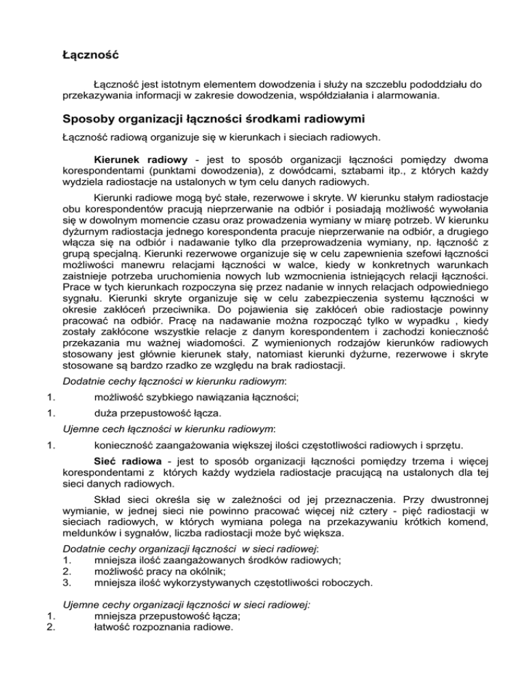 Łączność Sposoby organizacji łączności środkami radiowymi