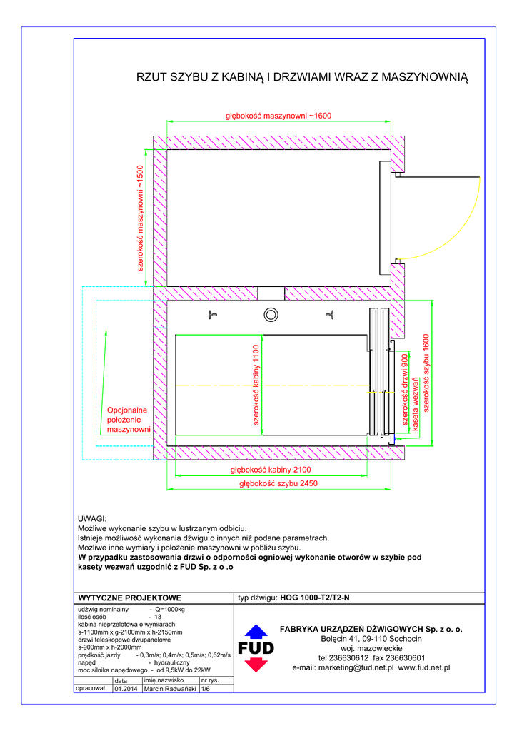 RZUT SZYBU Z KABINĄ I DRZWIAMI WRAZ Z MASZYNOWNIĄ