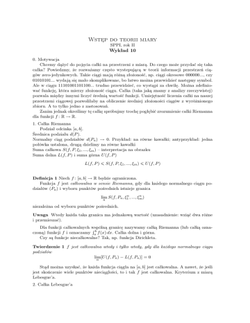 czoną) funkcji f i oznaczamy ab f (x) dx. Całka dolna i górna.