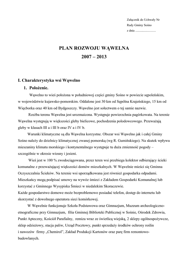 Plan rozwoju Wąwelna 2007 - 2013
