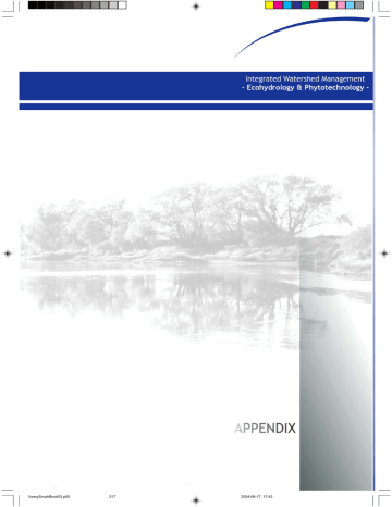 217 VwerySmatrBook03.p65 217 2004-06-17, 17:43 218 VwerySmatrBook03.p65 218 2004-06-17, 17:43 APPENDIX Appendix 219 VwerySmatrBook03.p65 219 2004-06-17, 17:43 Appendix 220 VwerySmatrBook03.p65 220 2004-06-17, 17:43 Appendix 221 VwerySmatrBook03.p65 221 2004-06-17, 17:43 Appendix 222 VwerySmatrBook03.p65 222 2004-06-17, 17:43 Appendix 223 VwerySmatrBook03.p65 223 2004-06-17, 17:43 Appendix 224 VwerySmatrBook03.p65 224 2004-06-17, 17:43 Appendix 225 VwerySmatrBook03.p65 225 2004-06-17, 17:43 GLOSSARY AND MOST COMMONLY USED ABBREVIATIONS Glossary & Abbreviations AEROBES – organisms that can live only in aerobic conditions as they gain energy from the process of BIOMANIPULATION – all methods of changing biological structure of an ecosystem in order to im- respiration. AGGREGATION – the process of combining smaller prove water quality. BIOMASS – the quantity of living organisms expres- spatial units into larger sets. ALGAE- microscopic, usually unicellar, plants. Al- sed in units of volume or mass, generally related to a unit of volume or area within a water body. lochthonous – brought into a water body from outside. Also organic material, usually plant or animal waste, especially used as fuel. ALLOCHTHONOUS organic matter – organic matter transported into a lake or river from adjacent BIOTEST – biological test method using animals or plants to provide a measure of total toxicity of a ecosystems. ANAEROBES – organisms living in anaerobic condi- compound. BIOTOPE – populations of all species living in a tions and gaining energy from chemical reactions which are not based on oxygen transformations. particular space. BLOOMS – high concentrations of phytoplankton ANALOGUE MAP – map printed on paper using graphic symbols to represent features and values. biomass. BUFFER – a zone of given radius around a geogra- ARC – a line consisting of a series of vertices. ATTRIBUTE – an alphanumeric characteristic of a phical object (point, line, area). CARRYING CAPACITY – the dynamic equilibrium geographic object (point, line, area) that can be stored in a relational database and linked by an around which a population fluctuates; regulated by available space and the amount (and quality) identifier to an object. AUTOCHTHONOUS – produced within a water body. of available resources. CARTESIAN COORDINATE SYSTEM – a system of BIOASSESSMENT (BIOASSAY) - Uses biota as the endpoint to represent environmental conditions and assess environmental quality. two or three mutually perpendicular axes along which the location of any point can be precisely described by a set of (x,y,z) coordinates. BIODEGRADATION – the gradual destruction of a material due to natural or artificially induced bio- CASCADING EFFECT - transmission of changes within a given trophic level to lower ones. logical activity. BIOLOGICAL assessment (Bioassessment) – an eva- CHELATING – capable of forming a ring-shaped molecular structure and locking a metal ion in place, luation of the biological condition of a water body through the use of biosurveys and other direct me- thereby reducing their activity. CLEAR WATER PHASE - period in spring (frequen- asurements of resident biota in surface waters. BIOLOGICAL CRITERIA (BIOCRITERIA) – numeric va- tly in June) characterised by intensive consumption (maximal grazing rate) of filtering zooplank- lues or narrative expressions that describe the reference biological conditions of aquatic commu- ton on phytoplankton. As a consequence, phytoplankton are reduced to very low levels and wa- nities inhabiting waters that have been given a designated aquatic life use. ter transparency increases sharply. CONTOUR – a line connecting points of equal ele- BIOLOGICAL MONITORING (BIOMONITORING) – the use of a biological entity as a detector and its re- vation (or other attribute). CYANOBACTERIA [also Cyanophytes or blue-gre- sponse as a measure to determine environmental conditions. Biosurveys and toxicity tests are com- en algae] – a group of phytoplankton, some of which can produce toxins, regulate their depth mon biomonitoring methods. BIOLOGICAL SURVEY (BIOSURVEY) – the process using a gas-vacuole buoyancy mechanism, and/or fix atmospheric nitrogen for use in growth. They of collecting and processing representative portions of a resident aquatic community to determi- often occur in eutrophic waters as a bloom. CYANOTOXINS - toxins produced by cyanobacte- ne the community membership, structure, and functions. ria and classified as: hepatotoxins, neurotoxins, dermatotoxins and lipopolisacharides (LPS). 226 VwerySmatrBook03.p65 226 2004-06-17, 17:43 ECOREGIONS – a relatively homogeneous area defined by the similarity of climate, landform, soil, ric or graphical. DATA MODEL – a formal method of arranging data potential natural vegetation, hydrology, or other ecologically relevant variables. to represent an observed environment. DATABASE – a computer file containing data, or- ECOTONE – the transition zone between two different types of ecosystems, such as a river and a ganized, inter alia, as a set of tables or coordinates of the points and their attendant attributes. meadow, characterized by very high biodiversity; ecotones may play an important role as buffers, DENITRIFICATION – the microbiologically-mediated reduction of oxygenated nitrogen compounds modifying and limiting flows of nutrients and pollutants between ecosystem components. to gaseous nitrogen. DENITRIFYING BACTERIA – the group of bacteria EFFICIENT INFILTRATION - the amount of precipitation water, which passes (percolates) from the which utilize nitrate in one of three metabolic pathways: unsaturated zone into the ground water. Efficient infiltration is sometimes called recharging infil- a) without accumulating nitrite, b) with transient accumulation of nitrite, and tration. EH – ecohydrology (see: chapter 2.A). c) ELISA (enzyme-linked immunosorbent assay) - sensitive biochemical method for detecti