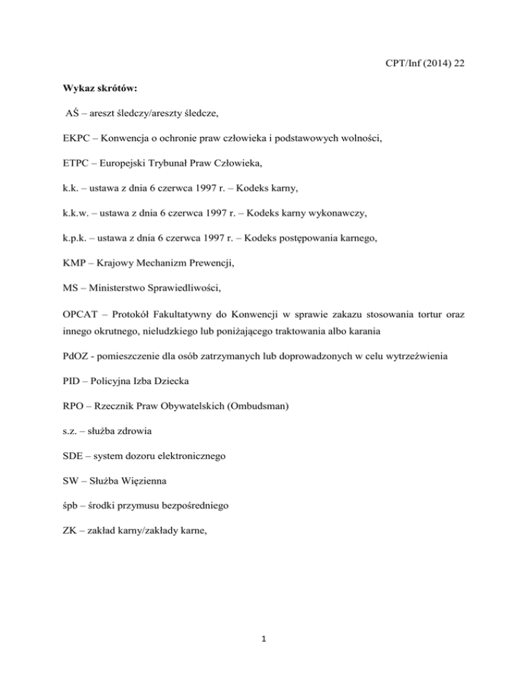 CPT/Inf (2014) 22 Wykaz skrótów: AŚ – areszt śledczy/areszty