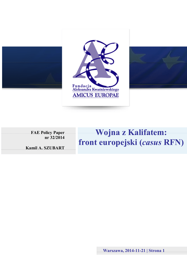 FAE Policy Paper nr 32/2014 Kamil A. SZUBART Wojna z Kalifatem: front europejski (casus RFN) Warszawa, 2014-11-21 | Strona 1 Wojna z Kalifatem: front europejski (casus RFN) FAE Policy Paper nr 32/2014 Kamil Adam Szubart W związku z postępującą ekspansją radykalnych islamistów z Państwa Islamskiego (IS) w ramach ich samozwańczego kalifatu na obszarze Syrii i Iraku, możemy zaobserwować wzrost aktywności zwolenników, jak również przeciwników skrajnych odłamów islamu sunnickiego na terytorium RFN. Permanentna ofensywa lądowa IS znajduje szerokie poparcie wśród niemieckich salafitów, natomiast opieszałość i brak zdecydowanego uderzenia militarnego ze strony „koalicji chętnych” pod przywództwem USA budzi irytację społeczności tradycyjnie niechętnych przedstawicielom radykalnej wersji islamu, m.in. Kurdom oraz środowiskom powiązanym ze skrajną prawicą. W tym sensie wydarzenia w Lewancie i Mezopotamii – regionach dalekich geograficznie – znajdują jednak swoje bezpośrednie przełożenie na sytuację bezpieczeństwa wewnętrznego w Niemczech, czyniąc z Republiki Federalnej jeden z wielu „frontów” wojny z Kalifatem. Wzrost radykalizmu w RFN (zarówno po stronie zwolenników, jak i przeciwników IS) jest bez wątpienia wynikiem braku zdecydowania, a wręcz indolencji rządu federalnego, który od kilku miesięcy nie potrafi przedstawić w miarę spójnej strategii monitorowania, kontrolowania, jak również zwalczania zagrożeń ze strony radykalnych islamistów. Pasywność władz w Berlinie przyczynia się do przejmowania inicjatywy przez diaspory Kurdów i Jazydów (manifestacje i starcia uliczne w Hamburgu) oraz grup niemieckich chuliganów, utożsamiających się z klubami piłkarskimi. Nieformalny sojusz stadionowych chuliganów z grupami skrajnie prawicowymi jest przez nich samych określany jako „Chuligani przeciw salafitom” (Hooligans Gegen Salafisten, HoGeSa), który dał próbkę swoich możliwości podczas pierwszej demonstracji w Kolonii 26 października 2014 r., kiedy to w starciach ulicznych rannych zostało 44 policjantów1. Kolonia była pierwszym z cyklu protestów wspomnianej powyżej inicjatywy, kolejny miał miejsce 15 listopada w Hannowerze. Następne miasta, gdzie odbędą się demonstracje HoGeSa, to Berlin i Hamburg. Uliczne zamieszki wraz z kolejnymi doniesieniami o ok. 450 niemieckich obywatelach walczących po stronie IS, z których ośmiu poniosło śmierć w wyniku Gewalttätige Hooligan-Demo in Köln, http://www.zeit.de/politik/deutschland/2014-10/demonstration-gegen-salafisten (11.11.2014). 1 Warszawa, 2014-11-21 | Strona 2 Wojna z Kalifatem: front europejski (casus RFN) FAE Policy Paper nr 32/2014 Kamil Adam Szubart przeprowadzonych ataków samobójczych, uzasadnia postawienie pytania o stan bezpieczeństwa wewnętrznego RFN i prognozowane scenariusze rozwoju wydarzeń. Salafizm największym zagrożeniem? Według danych Federalnego Urzędu Statystycznego, na terytorium RFN w 2011 r. 2 przebywało ok. 4 – 4,5 mln muzułmanów. Największą grupę wśród nich (2,64 mln) stanowili sunnici, natomiast 1,8 mln wyznawców islamu posiadało niemieckie obywatelstwo. Około półmilionowa rozpiętość w oszacowaniu dokładnej liczy muzułmanów wynika z faktu, że praktycznie co szósty ankietowany, tj. ok. 17,4 proc., odmówił podania swojej przynależności wyznaniowej, ponadto gminy muzułmańskie o odróżnieniu od Kościołów chrześcijańskich nie prowadzą dokładnych statystyk swoich członków3. Nie można również zapomnieć, że duży odsetek osób deklarujących się jako muzułmanie, a równocześnie niebędących obywatelami RFN, przebywa na terytorium Niemiec nielegalnie i ewentualny udział w badaniach statystycznych prowadzonych cyklicznie przez SBA i władze krajów związkowych w celach administracyjnych, rodzi ich obawy przed wszczęciem procedury deportacyjnej. W kontekście niniejszej analizy, zapoznając się ze statystkami SBA, należy zwrócić szczególną uwagę na liczbę salafitów, przedstawicieli skrajnego prądu politycznoideologicznego w islamie sunnickim. Salafizm postuluje odrodzenie islamu poprzez powrót do korzeni i oczyszczenie religii z wszelkich naleciałości powstałych w wyniku jego wielowiekowej ewolucji. Zgodnie z danymi zaprezentowanymi w Narodowym Spisie Powszechnym SBA, muzułmanie deklarujący się oficjalnie jako salafici stanowią ok. 6-tysięczną społeczność4. Bardzo ciekawe są z kolei statystyki prezentowane przez Federalny Urząd Konstytucji (BfV), będący największą niemiecką służbą specjalną odpowiedzialną za bezpieczeństwo Wyniki Narodowego Spisu Powszechnego przeprowadzonego w 2011 r. zostały zaprezentowane 31 maja 2013 r. w Berlinie przez Prezesa SBA Rodericha Egelera. Za: Datenreport 2011: Ein Sozialbericht Für Die Bundesrepublik Deutschland, https://www.destatis.de/DE/Publikationen/Datenreport/Downloads/Datenreport2011.pdf?__blob=publicationFil e (11.11.2014). 3 Za: Datenreport 2011: Ein Sozialbericht Für Die Bundesrepublik Deutschland, https://www.destatis.de/DE/Publikationen/Datenreport/Downloads/Datenreport2011.pdf?__blob=publicationFil e (11.11.2014). 4 Ibidem. 2 Warszawa, 2014-11-21 | Strona 3 Wojna z Kalifatem: front europejski (casus RFN) FAE Policy Paper nr 32/2014 Kamil Adam Szubart wewnętrzne RFN. W publikowanym corocznie raporcie omawiającym zagrożenia bezpieczeństwa wewnętrznego za 2011 r. BfV szacowało liczbę salafitów na 3,8 tys.5. Z kolei badacz ekstremizmu islamskiego w fundacji Wissenschaft und Politik w Berlinie, a do października 2005 r. pracownik Referatu ds. Zagrożeń Terrorystycznych w Urzędzie Kanclerskim, Guido Steinberg, szacował liczbę salafitów w 2011 r. na 4 – 5 tys.6. Znaczna rozbieżność pomiędzy danymi przedstawionymi przez obie agendy federalne i niezależnego badacza może wskazywać, że w statystykach BfV uwzględniono wyłącznie osoby objęte działaniami operacyjnymi prowadzonymi pr