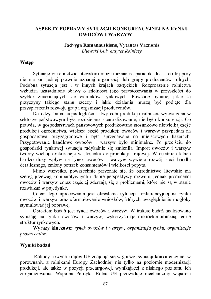 aspekty poprawy sytuacji konkurencyjnej na rynku owocw i warzyw