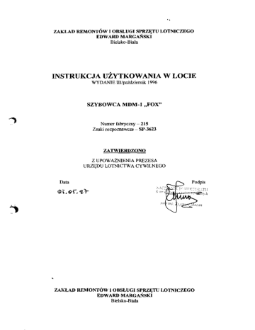bezpiecznego uiytkowania szybowca wyposaionego w rozne urzqdzenia