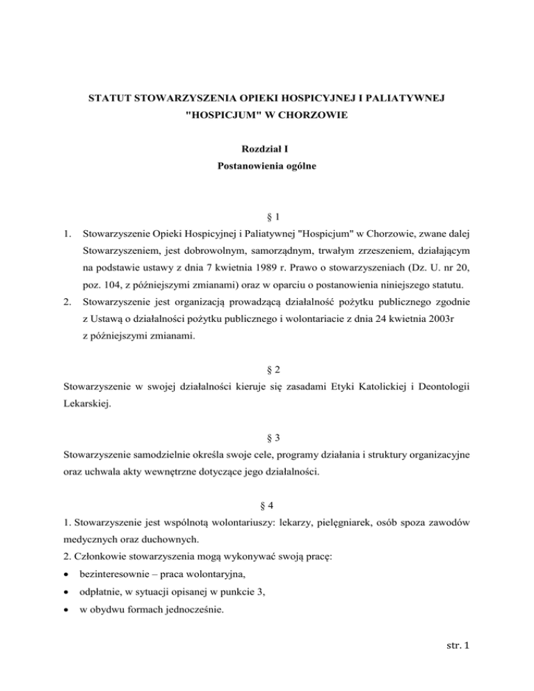 str. 1 STATUT STOWARZYSZENIA OPIEKI HOSPICYJNEJ I
