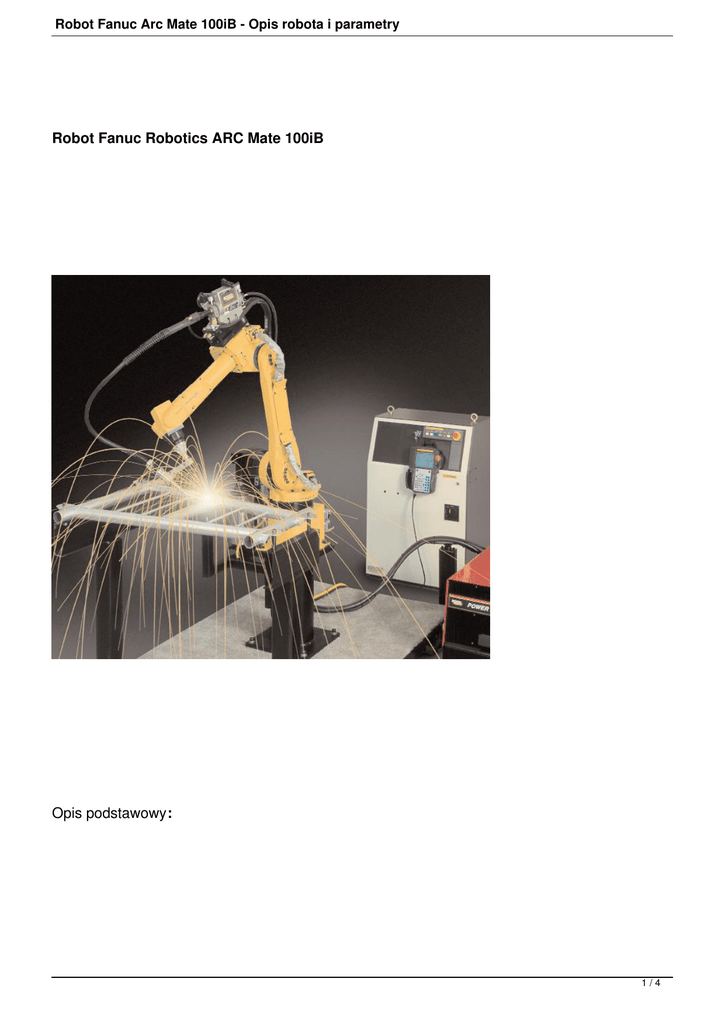 Robot Fanuc Arc Mate 100iB - Opis robota i parametry Robot Fanuc Robotics ARC Mate 100iB Opis podstawowy: 1/4 Robot Fanuc Arc Mate 100iB - Opis robota i parametry Robot przemysłowy Fanuc Arc Mate 100iB jest robotem 6-cio osiowym o modularnej konstrukcji, napędzany serwomotorami i stworzony do precyzyjnego spawania w technologii MIG MAG TIG oraz do cięcia. Prosta i pewna konstrukcja sprawia, że roboty serii ARC Mate 100iB są szybkie, dokładne i wytrzymałe. Oprogramowanie ARC TOOL sprawia, że programowanie, użytkowanie oraz uruchamianie jest proste i szybkie. Parametry spawania wprowadzane są bezpośrednio na robocie (zależnie od źródła prądowego). Kompaktowa budowa robota powoduje zwiększenie przestrzeni roboczej i daje możliwość gęstej zabudowy robotów. 2/4 Robot Fanuc Arc Mate 100iB - Opis robota i parametry 3/4 Robot Fanuc Arc Mate 100iB - Opis robota i parametry Cechy -- Mozliwość Umiejscowienie procesu Podajnik spawania. drutu podajnika opracę wadze do powoduje 12kg montowany precyzyjne bezpośrednio podawanie na drutu 3 dla osi spawalniczego robota. podczas Sterowanie robota kompatybilne zMIG większością glównych dostawców źródeł prądowych przyciski Teach ułatwiające Pendant (Konsola operatora) posiada charakterystyczne aplikacji spawania Maksymalny udźwig :drutu 6kg na płycie montażowej kątem bez żadnej montowania modyfikacji robota sprzętowej na ścianie, robota na suficie lub montowania pod jednostki Uszczelnione mechanicznej łożyska i spawania napędy zwiększają żywotność i poprawiają niezawodność Stosowany głównie do MAGpodwieszania TIG oraz cięcia 4/4