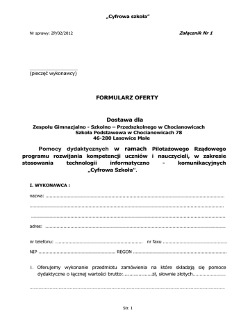 FORMULARZ OFERTY Dostawa dla Pomocy dydaktycznych w ramach
