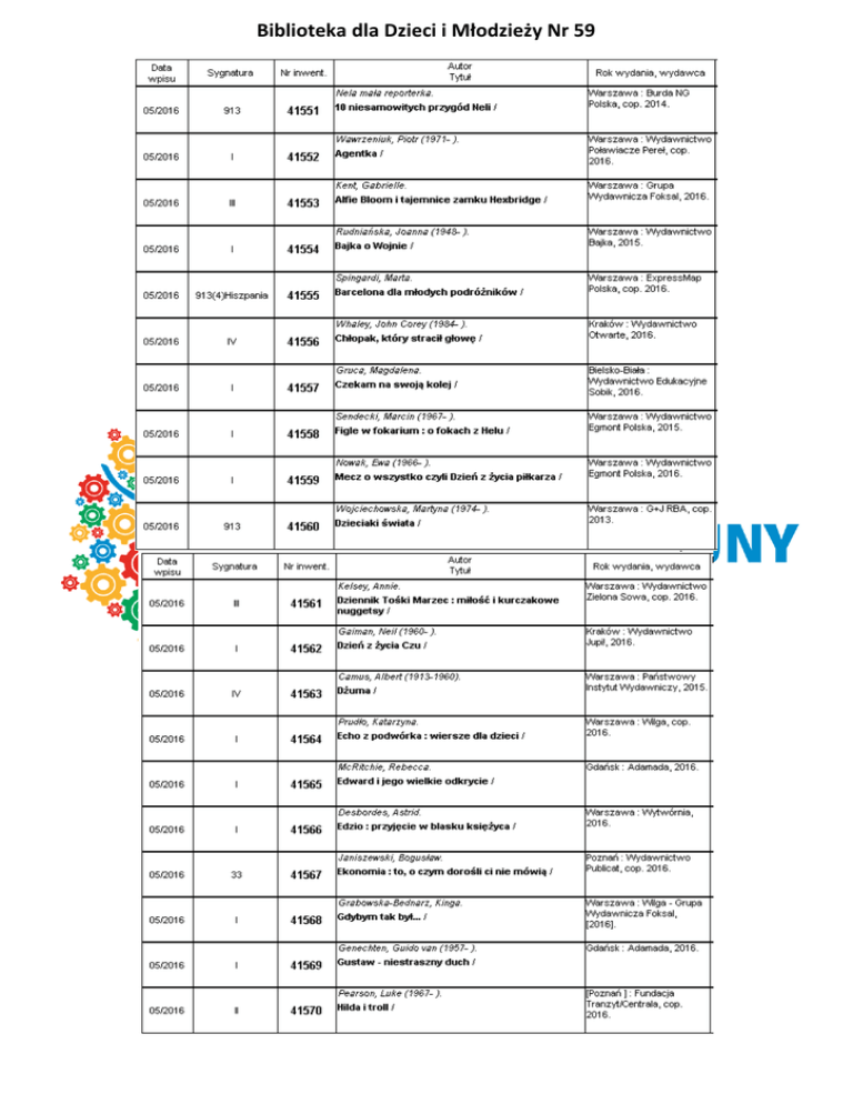 Biblioteka dla Dzieci i Młodzieży Nr 59 Biblioteka dla Dzieci i Młodzieży Nr 59 Biblioteka dla Dzieci i Młodzieży Nr 59 Biblioteka dla Dzieci i Młodzieży Nr 59