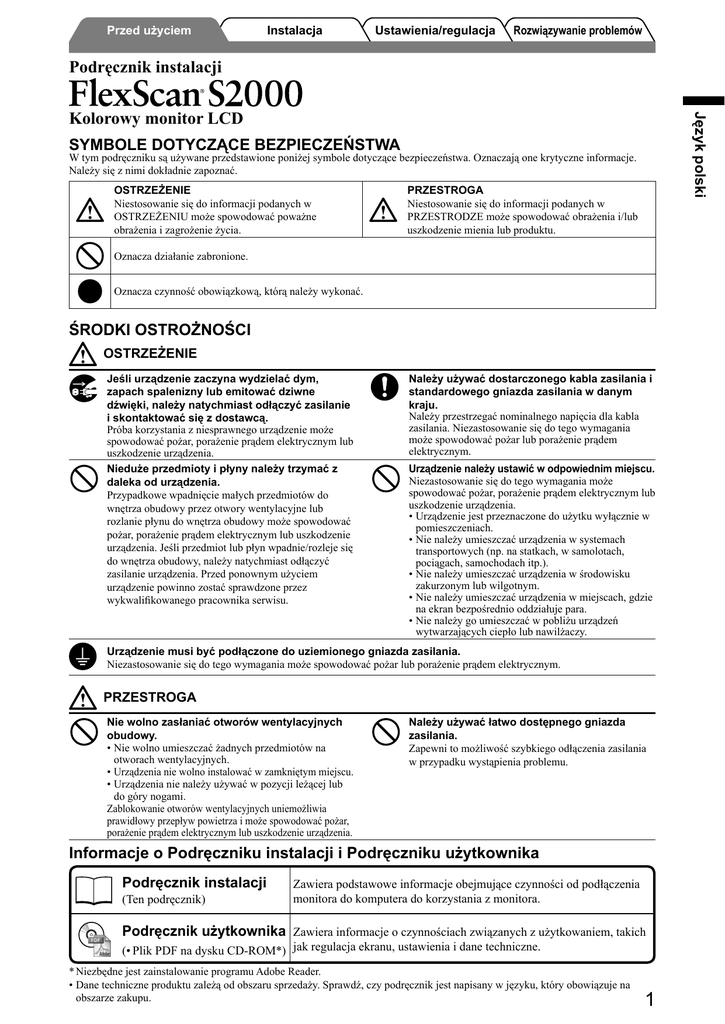 FlexScan S2000 Podręcznik instalacji