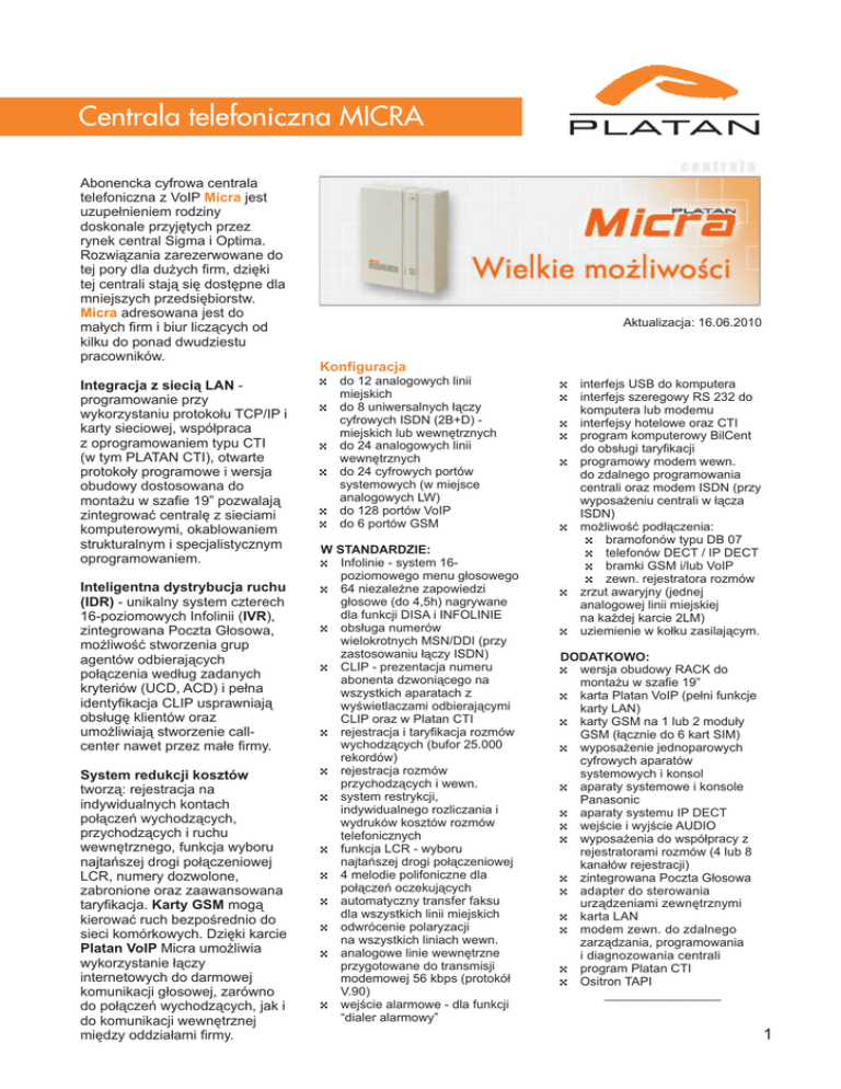 miejskich), do 8 uniwersalnych ostępów ISDN BRA (na styku S/T)