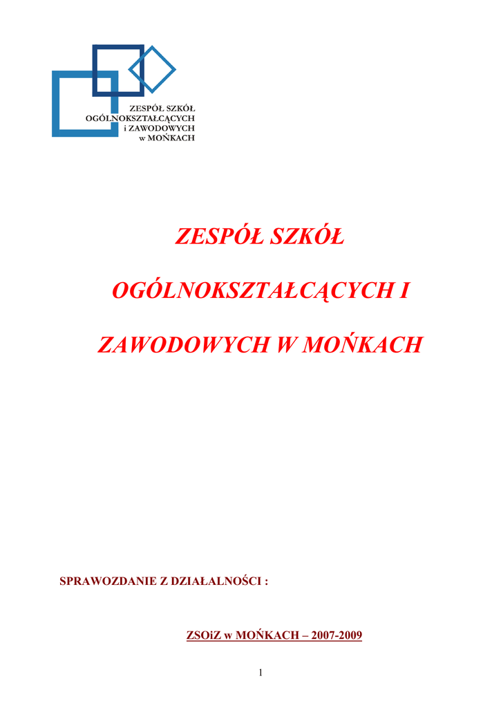 ZESPÓŁ SZKÓŁ OGÓLNOKSZTAŁCĄCYCH I ZAWODOWYCH W MOŃKACH SPRAWOZDANIE Z DZIAŁALNOŚCI : ZSOiZ w MOŃKACH – 2007-2009 1 ZESPÓŁ SZKÓŁ OGÓLNOKSZTAŁCĄCYCH I ZAWODOWYCH W MOŃKACH CHARAKTERYSTYKA SZKOŁY 1. NAZWA – ZESPÓŁ SZKÓŁ OGÓLNOKSZTAŁCACYCH I ZAWODOWYCH 2. ADRES 19 – 100 MOŃKI, ul. TYSIĄCLECIA 15, tel. 716-27-38, 716-27-05 3. www.zsmonki.pl, [email protected], [email protected] 4. DYREKTOR – KRYSTYNA MARIA KRYŃSKA 5. WICEDYREKTORZY – AGATA SZPYRUK, JUSTYNA ANNA SKUTNIK 6. ORGAN PROWADZĄCY – POWIAT MONIECKI 7. ORGAN SPRAWUJĄCY NADZÓR PEDAGOGICZNY – PODLASKI KURATOR OŚWIATY 8. LICZBA ODDZIAŁÓW – 47 (od 1.09. 2007); 9. TYPY SZKÓŁ (liczba oddziałów) – a. LICEUM OGÓLNOKSZTAŁCĄCE - 13 z rozszerzonym prog. nauczania z przedmiotów: - humanistycznych - matematyczno - geograficznych - matematyczno - fizycznych - biologiczno - chemicznych b. SZKOŁA ZAWODOWA – 9 - mechanik pojazdów samochodowych - rolnik - oddział wielozawodowy d. TECHNIKUM - 15 - technik technologii żywności - technik ekonomista - technik rolnik - technik informatyk e. SZKOŁA SPECJALNA PRZYSPOSABIAJĄCA DO PRACY - 2 f. GIMNAZJUM SPECJALNE – 1 e. LICEUM OGÓLNOKSZTAŁCĄCE DLA DOROSŁYCH – 3 f. UZUPEŁNIAJĄCE LICEUM OGÓLNOKSZTAŁCĄCE DLA DOROSŁYCH - 2 g. TECHNIKUM UZUPEŁNIAJĄCE DLA DOROSŁYCH – 2 - zawód – technik rolnik h. SZKOŁA POLICEALNA – 3 - zawód – technik agrobiznesu 10. LICZBA UCZNIÓW I SŁUCHACZY – 1316 ; w tym: LO, - 434, SZKOŁY SPECJALNE -17, ZASADNICZA SZKOŁA ZAWODOWA, TECHNIKUM – 691, DOROŚLI - 193 11. LICZBA PRACOWNIKÓW ADMINISTR. – OBSŁUG. – 22 INTERNAT 1. ADRES – 19 – 100 MOŃKI, ul. TYSIĄCLECIA 15, tel. 716-25-24 www.internat.zsmonki.pl e-mail: [email protected] 2. KIEROWNIK – mgr DOROTA FILEWICZ 3. LICZBA WYCHOWAWCÓW – 4 4. ILOŚĆ MIEJSC – 78 5. LICZBA PRACOWNIKÓW ADMINISTR. – OBSŁUG. – 7 etatów 2 PORÓWNANIE LICZBY UCZNIÓW I SŁUCHACZY W DWÓCH OSTATNICH LATACH LICZBA LO SZKOŁY ZAWODOWE TECHNIKUM SZKOŁY SPECJALNE DOROŚLI RAZEM 2007/2008 418 262 418 17 206 1312 2008/2009 414 257 434 17 193 1316 Motto szkoły: „W wychowaniu chodzi o to, ażeby człowiek stawał się coraz bardziej człowiekiem – o to, ażeby bardziej był, a nie tylko więcej miał” Jan Paweł II ATUTY SZKOŁY: wysoki poziom nauczania, zdawalność matury na bardzo dobrym poziomie (ok. 97%), zdawalność egzaminów potwierdzających kwalifikacje zawodowe na poziomie ok. 90%, absolwenci dostają się na wybrane kierunki studiów wyższych (ok. 85%), możliwość rozwijania zainteresowań poprzez uczestnictwo w różnorodnych formach zajęć pozalekcyjnych (koła zainteresowań, wolontariat, projekty edukacyjne), sukcesy w olimpiadach i konkursach przedmiotowych m.in.: Olimpiada Wiedzy o Unii Europejskiej, Olimpiada Tematyczna „Losy Polaków na Wschodzie, Ogólnopolski Konkurs Historyczny „Drogi do Wolności”, Olimpiada Wiedzy o Polsce i Świecie Współczesnym, Olimpiada Wiedzy o Prawach Człowieka, Ogólnopolski Konkurs Historyczny „Krąg”, Ogólnopolski Konkurs Historyczny „Polska Piastowska” Master of Grammar, Olimpiada Jęz. Angielskiego, Olimpiada Wiedzy Teologicznej, Konkurs z Historii est Oxford, Olimpiada Promocji Zdrowego Stylu Życia, Ogólnopolski Konkurs Ekologiczny „EkoPlaneta”, XI Olimpiada Przyrodnicza, Konkurs Kangur 2009, III Ogólnopolska Olimpiada Wiedzy o Rodzinie, Olimpiada Przedsiębiorczości, Konkurs o Indeks studenta Fizyki, Olimpiada Ekologiczna, Ogólnopolski Turniej Wiedzy o Mleku i Mleczarstwie, Olimpiada Wiedzy i Umiejętności Rolniczych, Jak zreformować gospodarstwo mojego ojca? osiągnięcia w zawodach sportowych, realizacja różnorodnych form zajęć kulturalnych oraz turystyczno- rekreacyjnych zapewniających naukę oraz aktywny wypoczynek: wyjazdy do kina, teatru, muzeów, pikniki, ogniska klasowe, biwaki, wyjazdy integracyjne, wycieczki, wyjazd maturzystów do Częstochowy oraz wyjazdy uczniów na Dni Młodzieży do Lednicy. udział w projektach współfinansowanych ze środków Unii Europejskiej oraz innych rozwijających wiedzę i umiejętności uczniów, uczestnictwo w dniach otwartych uczelni wyższych i Salonach Edukacyjnych Maturzystów, wykwalifikowana kadra pedagogiczna, 3 bardzo dobra baza sportowo- rekreacyjna, szkoła jest bezpieczna (posiada monitoring w budynku szkoły zawodowej, uczestniczy w kampaniach „Szkoła bez przemocy”), tradycyjne imprezy i uroczystości szkolne (Norwidalia, Cyprianki, Dzień Języków Obcych, Szkolny Model ONZ, wieczór kolęd w języku angielskim, Festiwal Narodów, Dni Otwarte Szkoły, Studniówka, Walentynki, Połowinki, Sprzątanie Świata, „Góra Grosza”, Światowy Dzień Zdrowia), możliwość zrobienia prawa jazdy na samochód i ciągnik, kursów i szkoleń zawodowych możliwość zakwaterowania w Internacie ZSOiZ w Mońkach dla uczniów zamiejscowych SZKOŁA POSIADA: dobrze wyposażone pracownie, w tym cztery komputerowe ze stałym dostępem do Internetu, dwie biblioteki z Internetowymi Centrami Informacji Multimedialnej warsztaty szkolne (zdjęcie 1), gospodarstwo pomocnicze, wśród pomocy dydaktycznych – pakiety edukacyjne do realizacji projektu Archimedes, projektory, rzutniki multimedialne salę gimnastyczną wyremontowaną w 2008 r.(zdjęcie 2), małą salkę gimnastyczną możliwość korzystania z zaplecza sportowo-rekreacyjnego (pływalni i kompleksu „Mój Orlik”), (zdjęcia 3), radiowęzeł (zdjęcie 4), samochody do nauki jazdy Lanos i Uno ciągniki, maszyny i urządzenia rolnicze (Zetor, Ursus, Farmtrack) ZAJĘCIA POZALEKCYJNE: Szkolny Klub Europejski Szkolny Klub Przedsiębiorczości i Mentoringu Szkolny Klub PCK i HDK Wolontariat Koło teatralne Koło informatyczne €ko-Klub Przedsiębiorczości przedmiotowe koła zainteresowań 4 Szkolny Ośrodek Kariery zajęcia sportowe: sekcja piłki siatkowej, sekcja lekkiej atletyki, sekcja tenisa stołowego, aerobik, sekcja szachów, sekcja pływacka 