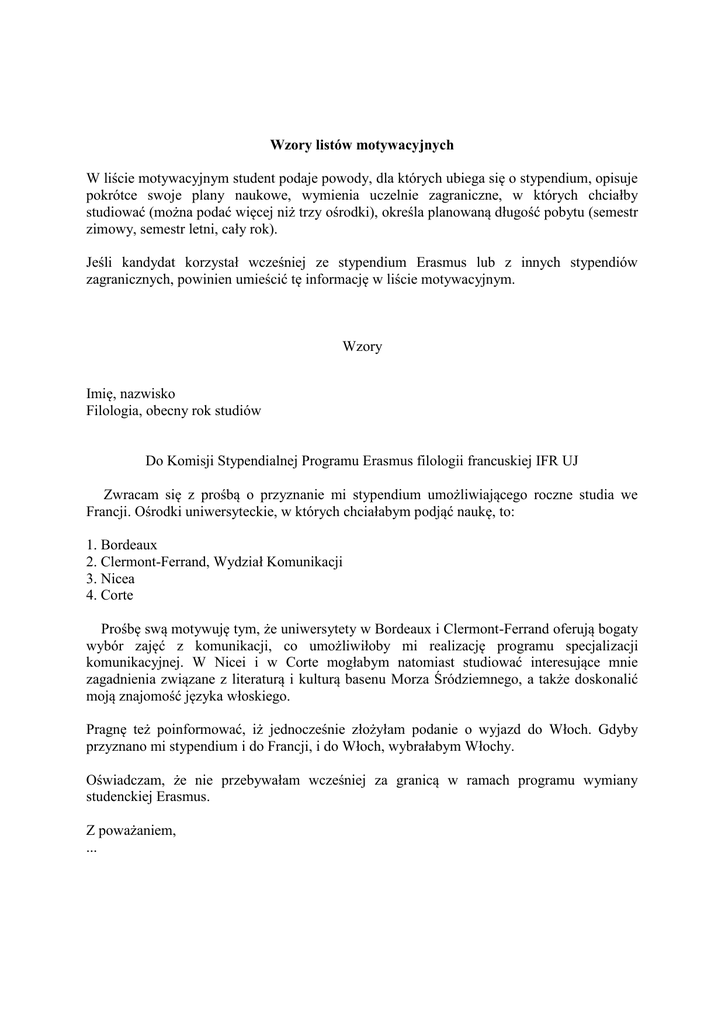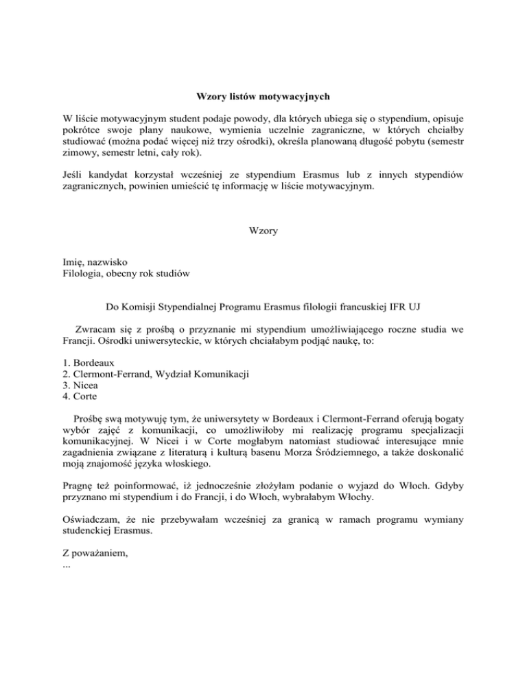 wzory listów motywacyjnych - Instytut Filologii Romańskiej