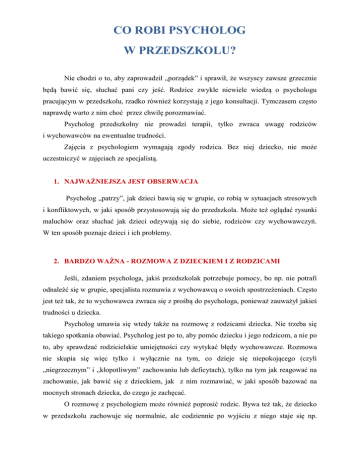 CO ROBI PSYCHOLOG W PRZEDSZKOLU?