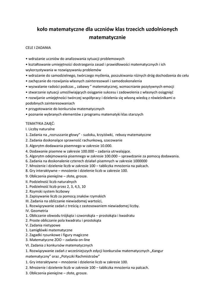 koło matematyczne dla uczniów klas trzecich uzdolnionych