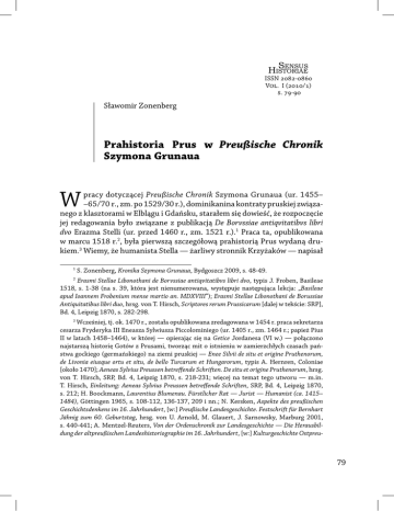 SENSUS HISTORIAE ISSN - Vol. I (/) s. - Sławomir Zonenberg Prahistoria Prus w Preußische Chronik Szymona Grunaua W pracy dotyczącej Preußische Chronik Szymona Grunaua (ur. 1455– –65/70 r., zm. po 1529/30 r.), dominikanina kontraty pruskiej związanego z klasztorami w Elblągu i Gdańsku, starałem się dowieść, że rozpoczęcie jej redagowania było związane z publikacją De Borvssiae antiqvitatibvs libri dvo Erazma Stelli (ur. przed 1460 r., zm. 1521 r.).1 Praca ta, opublikowana w marcu 1518 r.2, była pierwszą szczegółową prahistorią Prus wydaną drukiem.3 Wiemy, że humanista Stella — żarliwy stronnik Krzyżaków — napisał 1 S. Zonenberg, Kronika Szymona Grunaua, Bydgoszcz 2009, s. 48-49. 2 Erasmi Stellae Libonothani de Borvssiae antiqvitatibvs libri dvo, typis J. Froben, Basileae 1518, s. 1-38 (na s. 39, która jest nienumerowana, występuje następująca lekcja: „Basileae apud Ioannem Frobenium mense martio an. MDXVIII”); Erasmi Stellae Libonothani de Borussiae Antiquitatibus libri duo, hrsg. von T. Hirsch, Scriptores rerum Prussicarum [dalej w tekście: SRP], Bd. 4, Leipzig 1870, s. 282-298. 3 Wcześniej, tj. ok. 1470 r., została opublikowana zredagowana w 1454 r. praca sekretarza cesarza Fryderyka III Eneasza Sylwiusza Piccolominiego (ur. 1405 r., zm. 1464 r.; papież Pius II w latach 1458–1464), w której — opierając się na Getice Jordanesa (VI w.) — połączono najstarszą historię Gotów z Prusami, tworząc mit o istnieniu w zamierzchłych czasach państwa gockiego (germańskiego) na ziemi pruskiej — Enee Silvii de situ et origine Pruthenorum, de Livonia eiusque ortu et situ, de bello Turcarum et Hungarorum, typis A. Hernren, Coloniae [około 1470]; Aeneas Sylvius Preussen betreffende Schriften. De situ et origine Pruthenorum, hrsg. von T. Hirsch, SRP, Bd. 4, Leipzig 1870, s. 218-231; więcej na temat tego utworu — m.in. T. Hirsch, Einleitung: Aeneas Sylvius Preussen betreffende Schriften, SRP, Bd. 4, Leipzig 1870, s. 212; H. Boockmann, Laurentius Blumenau. Fürstlicher Rat — Jurist — Humanist (ca. 1415– 1484), Göttingen 1965, s. 108-112, 136-137, 209 i nn.; N. Kersken, Aspekte des preußischen Geschichtsdenkens im 16. Jahrhundert, [w:] Preußische Landesgeschichte. Festschrift für Bernhart Jähnig zum 60. Geburtstag, hrsg. von U. Arnold, M. Glauert, J. Sarnowsky, Marburg 2001, s. 440-441; A. Mentzel-Reuters, Von der Ordenschronik zur Landesgeschichte — Die Herausbildung der altpreußischen Landeshistoriographie im 16. Jahrhundert, [w:] Kulturgeschichte Ostpreu- 79 Sławomir Zonenberg ją w I dekadzie XVI w. z inspiracji biskupa pomezańskiego Hioba von Dobenecka (1501–1521), bliskiego współpracownika wielkiego mistrza Fryderyka Saskiego (1498–1510), a następnie wielkiego mistrza Albrechta Hohenzollerna (1511–1525), w ich dążeniach do odzyskania Prus Królewskich (utwór został dedykowany Fryderykowi Saskiemu; w latach 1501–1507, autor był jego lekarzem).4 Myślą przewodnią De Borvssiae antiqvitatibvs libri dvo Erazma Stelli było „quam iusto dei iudicio Borussia ad Germanorum redierit incolatum, Quum Germaniae et pars sit, et Germanis a rerum exordio debita, inhabitata: luculentissimorum scriptorum testimonio”.5 Stella zatem — jak widać — nie poświęcił go udowodnieniu praw Krzyżaków do ziemi pruskiej (o nich samych wyrażał się jednak nader pochlebnie, określając jako „sanctosancta militia”), lecz jej przynależności do nacji niemieckiej, co było całkowicie nowym elementem w historiografii poświęconej temu krajowi. Humanista ten zebrał wypowiedzi autorytetów starożytnych — Ptolemeusza, Pliniusza, Pomponiusza Meli, Tacyta, Strabona, Solinusa, Jordanesa — które świadczyły, że pierwotnymi mieszkańcami Prus (nazwanymi „Hulmigeria”) byli Germanie. Kraj ten był — według niego — podbijany przez różne ludy, a jako ostatni dokonali tego niegermańscy Borussowie (Prusowie). Jednak Germanie pozostali w Prusach, przede wszystkim w okolicach Dolnej Wisły. Pierwszym zaś wspólnym królem Borussów i „zgotyzowanych (zgermanizowanych)” Alanów został „Vidvutus Alanus”. Stella stwierdził, że wszystkie te tereny podlegały Cesarstwu. Gdy Polacy, z którymi sprzymierzyli się Borussowie, podnieśli bunt, cesarz Fryderyk Barbarossa powierzył namiestnictwo nad żyjącymi w Prusach Germanami pochodzącemu ze starego saskiego rodu Konradowi, księciu „Massobiorum”. Ten, nie będąc w stanie poradzić sobie z atakami Borussów, zwrócił się o pomoc do braci-rycerzy z zakonu niemieckiego, którzy siłą podporządkowali Prusy wierze chrześcijańskiej. Wydźwięk polityczny utworu Stelli był bardzo wyraźny: historia Prus nie zaczyna się z chwilą przybycia do nich Krzyżaków, a pradzieje kraju są związane z Ger- ßens in der Frühen Neuzeit, hrsg. von K. Garber, M. Komorowski, A. E. Walter, Tübingen 2001 (Frühe Neuzeit, Bd. 56), s. 598 i nn. 4 Zob. H. Freytag, Der preussische Humanismus bis 1550, Zeitschrift des Westpreussischen Geschichtsvereins, H. 47, 1904, s. 50-51; K. Forstreuter, Vom Ordensstaat zum Fürstentum. Geistige und politische Wandlungen im Deutschordensstaate Preußen unter den Hochmeistern Friedrich und Albrecht (1498–1525), Kitzingen/Main 1951, s. 27. 5 Erasmi Stellae Libonothani de Borvssiae antiqvitatibvs libri dvo, s. 8; Erasmi Stellae Libonothani de Borussiae Antiquitatibus libri duo, s. 285; J. Dworzaczkowa, Kronika pruska Szymona Grunaua jako źródło historyczne, „Studia Źródłoznawcze”, t. 2, 1958, s. 131. 80 Prahistoria Prus w Preußische Chronik Szymona Grunaua manami podległymi Cesarstwu.6 Takie ujęcie historii owego kraju było bardzo niebezpieczne dla Polski i popierających ją elit Prus Królewskich. Pamiętano bowiem, że rozpowszechnienie „wrogich”, czy „niewygodnych” twierdzeń geograficzno-historycznych mogło spowodować poważne kłopoty. Tak było w przypadku poglądu starożytnego geografa Ptolemeus