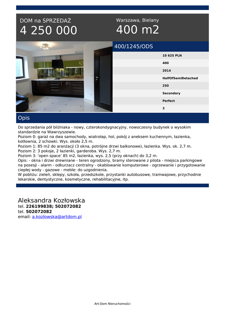 4 250 000 400 m2 - Biuro nieruchomości ART