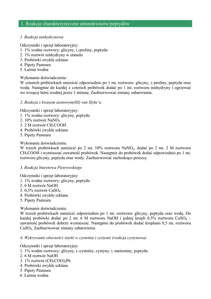 1. Reakcje charakterystyczne aminokwasów/peptydów