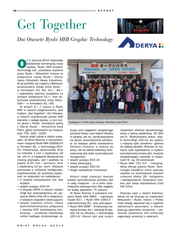 O F F S E T 58 Get Together Dni Otwarte Ryobi MHI Graphic Technology O d 1 stycznia 2014 rozpoczęła działalność komercyjną nowa spółka, Ryobi MHI Graphic Technology Ltd., powołana wspólnie przez Ryobi i Mitsubishi (nazwa to połączenie nazwy Ryobi i skrótu nazwy Mitsubishi Heavy Industries). W jej portfolio są maszyny offsetowe: produkowane dotąd przez Ryobi – w formatach A3, B3, A2+, B2+ i najbardziej obecnie pożądana na rynkach światowych A1+; oraz dotychczas produkowane przez Mitsubishi – w formatach B1 i B0. W dniach 6 i 7 marca w Ryobi MHI w Japonii zorganizowano, pod hasłem „Get Together”, Dni Otwarte, w których uczestniczyło ponad 400 klientów z całego świata, w tym liczna grupa z Polski. Zwiedzano jedną z fabryk Ryobi – Hiroshima East Plant, gdzie montowane są maszyny serii 750, 920 i 1050. Goście wzięli udział w dwóch pokazach. W Show Roomie 1 demonstrowano maszynę Ryobi MHI V3000LX-6 w formacie B1, z technologią ECOUV. Prezentacja obejmowała druk na mikrofali 1 mm z prędkością 16 tys. ark./h, a następnie błyskawiczną zmianę przyrządu, płyt i podłoża na papier 0,04 mm i ponowny druk z prędkością 13 tys. ark/h. Maszyna pracowała w unikalnej konfiguracji, przystosowanej do produkcji opakowań (w kolejności od nakładania): •2 zespoły kolorystyczne (np. biel kryjąca) •zespół suszący ECO-UV •4 zespoły CMYK (z których ostatni mógł być wykorzystywany do uzyskania efektu Drip-off w połączeniu z kolejnym zespołem lakierującym) •zespół inspekcji online: listwa spetrofotometryczna połączona z kamerą CCD (prototypowa konstrukcja – umożliwia weryfikację online każdego drukowanego arś W I A T D R U K U 3/2 0 1 4 Delegacja z Polski przed fabryką Hiroshima East Plant kusza pod względem pożądanego pokrycia farbą i pod kątem błędów w obrazie, jak np. zanieczyszczenia na płycie; automatycznie weryfikuje na bieżąco pełne nastawienie farbowe maszyny w trakcie jej pracy, tak że zakres tolerancji kolorystycznej jest stale automatycznie korygowany) •zespół suszący ECO-UV •wieża lakierująca •zespół suszący ECO-UV •długie wykładanie modułowe. Klienci mogli zobaczyć również system symultanicznej wymiany płyt w całej maszynie – ta w pełni automatyczna operacja trwa (bez względu na liczbę zespołów) 75 sekund. W Show Roomie 2 pokazano maszyny Ryobi MHI 684X – najnowszy model A2+, i Ryobi MHI 1050-4 – czterokolorową B1, oraz pracujące: •Ryobi MHI 928P – 8-kolorową maszynę formatu A1+ (drukuje 8 użytków A4 na arkuszu), z technologią LED-UV. Klienci byli pod dużym wrażeniem efektów dwustronnego druku z pełną prędkością, 16 200 ark./h. Wydrukowana praca, dzięki technologii LED-UV, po wyjściu z maszyny była utrwalona i gotowa do dalszej obróbki. Również ta maszyna była wyposażona w system symultanicznej zmiany płyt, znacznie przyśpieszający operacje w maszynach 8- czy 10-kolorowych. •Ryobi MHI 751 C/F – maszynę, którą oferuje jedynie Ryobi. Technologia Cast&Foil inline pozwala uzyskać na drukowanych pracach unikalne efekty 3D, hologramy i zabezpieczenia. Oczywiście możliwy jest także standardowy Cold Foil inline. Podczas wizyt u dwóch klientów, którzy od lat drukują na maszynach Mitsubishi i Ryobi, klienci z Polski mieli okazję zapoznać się z zupełnie odmiennymi warunkami, w których pracują japońskie drukarnie, i porównać stosowane tam schematy organizacji produkcji z własnymi. O F F S E T Demo na maszynie formatu B1 – Ryobi MHI V3000LX-6 Uczestnicy Dni Otwartych docenili profesjonalny poziom imprezy, wyrażono też wiele pochlebnych opinii na temat marki Ryobi MHI. „Klienci stwierdzili zgodnie, że nie wyobrażali sobie dotychczas wielkości tego producenta i tak dużego zaawansowania technologicznego w procesie produkcji – relacjonuje Piotr Gabrylewicz, dyrektor Działu Maszyn Offsetowych Derya Sp. z o.o., wyłącznego przedstawiciela firmy Ryobi MHI w Polsce. – Pozytywny wpływ na opinie naszych potencjalnych klientów miała również informacja o aktualnej wielkości sprzedaży na rynku polskim. W marcu instalujemy dwie nowe maszyny serii 920, a w kolejnych tygodniach i miesiącach spodziewamy się dostawy kolejnych czterech nowych maszyn. Jednym z uczestników wyjazdu była drukarnia Vipro z Gdańska, reprezentowana przez obu właścicieli: Pana Przemysława Marchwińskiego i Pana Bogdana Puckowskiego. Wiedzieliśmy, że obecnie realizują inwestycję w maszynę drukującą naszej konkurencji, a celem wizyty obu panów było zobaczenie w pracy maszyny Ryobi MHI serii 920, która miała być brana pod uwagę podczas następnej inwestycji. Byliśmy naprawdę bardzo zaskoczeni, kiedy podczas dni otwartych oznajmili, że już ta pierwsza inwestycja również będzie realizowana z nami. Decyzję tę podjęli zwiedzając jedną z drukarń japońskich, wyposażoną właśnie w maszyny serii 750 w różnych konfiguracjach – zamówienie zostało podpisane podczas bankietu zorganizowanego po tej prezentacji. Dzięki temu jako pierwsza drukarnia w Europie będą pracować na najnowszym modelu maszyny Ryobi MHI serii 754 G S-4-D. Ta wersja naszej najbardziej zaawansowanej maszyny formatu B2+ jest oferowana od stycznia bieżącego roku”. „Inwestycje z ostatnich dwóch lat w drukarni Vipro to w 100% technologie japońskie – mówi Przemysław Marchwiński. – Bez względu na wagę zakupionej maszyny czy urządzenia, wszystkie one mają wspólny mianownik: doskonale radzą sobie ze 59 specyfiką zamówień, które realizujemy. Mając nadzieję, że japońska technologia „heavy” również spełni nasze oczekiwania, zdecydowaliśmy się na zakup maszyny Ryobi w formacie B2. Nie bez znaczenia jest fakt, że firma Ryobi, w odróżnieniu od producentów niemieckich, ma w swoim portfolio format C1, którym jesteśmy zainteresowani, tak więc obecna inwestycja będzie sprawdzianem przed przyszłoroczną, jak sądzimy