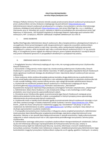 POLITYKA PRYWATNOŚCI serwisu https://analyzeo.com Niniejsza