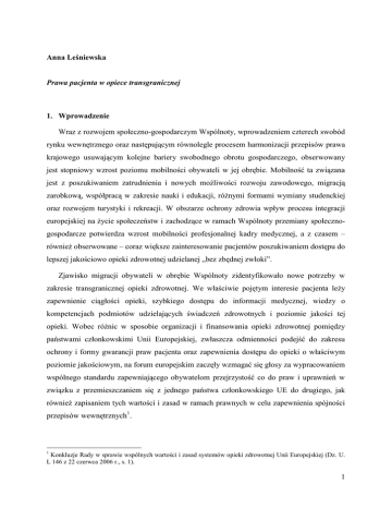Anna Leśniewska - Prawa pacjenta w opiece transgranicznej