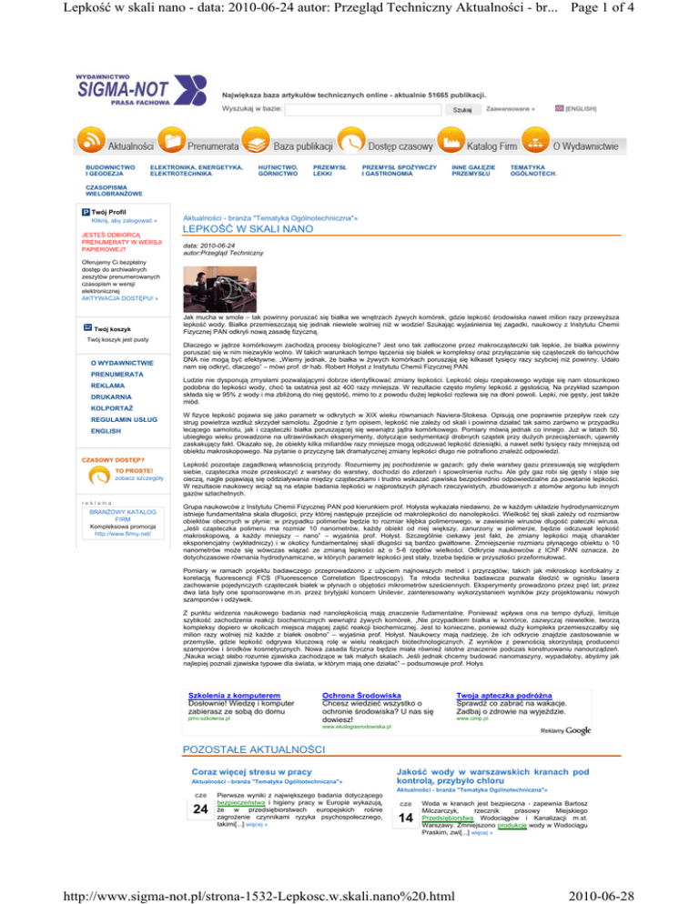Page 1 of 4 Lepkość w skali nano - data: 2010-06
