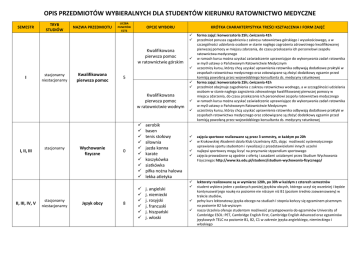 opis przedmiotów wybieralnych dla studentów kierunku ratownictwo