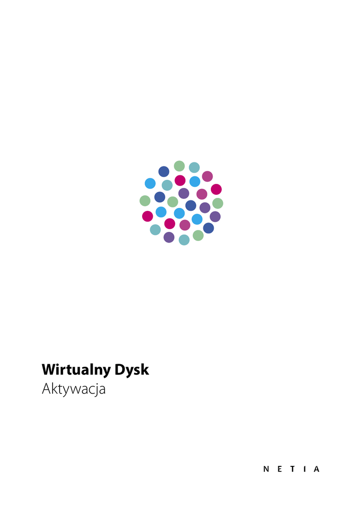 Wirtualny Dysk Aktywacja Jak aktywować usługę Wirtualny Dysk? Wirtualny Dysk to nielimitowany dostęp do Twoich danych z dowolnego miejsca na świecie. Dzięki temu możesz zdalnie i bezpiecznie przechowywać zasoby swojego dysku twardego. Więcej o usłudze: netia.pl/wirtualny_dysk Zobacz film, jak zainstalować Wirtualny Dysk na Twoim komputerze oraz jak korzystać z jego funkcjonalności lub przejdź do instrukcji poniżej. 1. Przygotuj klucz licencji (indywidualny numer) niezbędny do zainstalowania usługi. • Klucz licencji dostępny jest w otrzymanej wiadomości e-mail z potwierdzeniem zakupu produktu Wirtualny Dysk, jeśli został on zakupiony w sklepie internetowym (e-sklep.netia.pl). • Jeśli jesteś nowym Klientem Netii i podałeś na umowie numer telefonu kontaktowego, klucz licencji znajdziesz w otrzymanej wiadomości e-mail lub/i SMS po aktywacji usługi głównej (Internetu w Netii). Po siedmiu dniach klucz ten jest także przesyłany SMS-em na numer telefonu komórkowego, który został podany na umowie. 2. Pobierz pakiet instalacyjny Wirtualny Dysk. • Pakiet instalacyjny znajdziesz na dole strony netia.pl/wirtualny_dysk. 2 • Pakiet instalacyjny można pobrać także po zalogowaniu do serwisu Netia Online (netiaonline.pl). W tym wypadku należy przejść do zakładki Usługi —> Wirtualny Dysk —> Więcej —> Pobierz program. 3. Po kliknięciu na link, wybierz „Zapisz plik” z okna pobierania pliku. Po zakończeniu pobierania, jeśli nie otworzył się automatycznie, uruchom pobrany plik. Uwaga! Jeśli przy instalacji nie została wybrana ręcznie docelowa lokalizacja pliku, sprawdź w folderze „Pobrane” („Mój Komputer —> „Pobrane”). 4. Przed instalacją zamknij wszystkie działające na komputerze programy. 5. Po uruchomieniu programu automatycznie rozpocznie się proces instalacji: • Język instalacji – wybierz język instalacji. • Wybierz miejsce na dysku, gdzie chciałbyś zainstalować Wirtualny Dysk. • Nazwa kopii zapasowej – wybierz nazwę dla Twojego dysku. • Wybrane pliki – określa sposób przenoszenia danych na Wirtualny Dysk. Dostępne są dwie opcje: Ręczna, zalecana, która samodzielnie pozwala określić, które pliki chcesz zamieścić na Wirtualnym Dysku lub Automatyczna, gdzie program sam wybiera pliki do przeniesienia. • Przepustowość – określa jak szybko pliki będą przenoszone na Wirtualny Dysk. Prędkość zalecana dla słabszych łączy to 30 kB/s. • Po przejściu przez proces instalacyjny kliknij Zakończ. 3 6. Po zakończeniu instalacji pojawi się ekran konfiguracyjny Wirtualnego Dysku, który m.in. pozwala na utworzenie kopii zapasowej plików. Wybierz Utwórz kopię zapasową plików. 7. Po wybraniu tej opcji należy wprowadzić klucz licencji (zobacz punkt 1 tej instrukcji). 8. N astępnie pokaże się ekran tworzenia konta Wirtualnego Dysku, który pozwoli na utworzenie nazwy nowego użytkownika. W tym celu zostaniesz poproszony o podanie swojego adresu e-mail i hasła. 4 9. W kolejnych oknach ekranu konfiguracyjnego należy wybrać 1) punkt kopii zapasowej, czyli ustawić wstępne parametry przenoszenia plików na Wirtualny Dysk, oraz 2) określić, w jakim czasie po usunięciu plików z komputera, ich kopie zapasowe będą przechowywane na Wirtualnym Dysku. 10. Po ustawieniu wszystkich preferencji pojawia się główny ekran Wirtualnego Dysku, gdzie można ustawić/zmienić swoje preferencje. Więcej informacji i opis poszczególnych funkcji znajduje się w instrukcji. Uwaga! Pamiętaj, że usługa Wirtualny Dysk jest darmowa, jeśli w danym miesiącu przeniesiesz na niego nie więcej niż 1 GB danych. Łączny rozmiar plików znajdujących się na Wirtualnym Dysku możesz kontrolować klikając na zakładkę Statystyka. Po przekroczeniu limitu 1GB do Twojej faktury zostanie doliczona opłata w wysokości 9,90 zł brutto. Jeśli przed rozpoczęciem kolejnego okresu rozliczeniowego zmniejszysz ilość danych przechowywanych na Wirtualnym Dysku, opłata ta nie zostanie naliczona za kolejny miesiąc. Aby przeglądać lub bezpośrednio pobierać pliki przez stronę WWW należy otworzyć adres: wirtualnydysk.netia.pl a następnie zalogować się do portalu, wpisując e-mail i hasło podane przy instalacji. 5