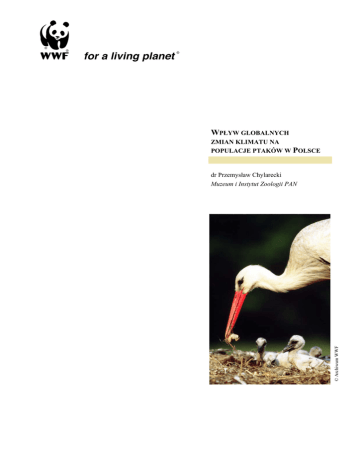 WPŁYW GLOBALNYCH ZMIAN KLIMATU NA POPULACJE PTAKÓW W POLSCE dr Przemysław Chylarecki © Archiwum WWF Muzeum i Instytut Zoologii PAN Globalne zmiany klimatyczne, objawiające się przede wszystkim wzrostem temperatur, mogą oddziaływać na populacje ptaków na szereg sposobów. Najważniejsze z nich to: - zmiany zasięgu (lęgowisk, zimowisk, szlaków wędrówkowych), - zmiany terminów wędrówek, - zmiany terminów przystępowania do lęgów, - zmiany przeżywalności ptaków dorosłych, - zmiany produktywności. Wyżej wymienione efekty są często wzajemnie sprzężone i przedstawiony podział ma charakter umowny. Na przykład spowodowane klimatem zmiany w ilości potomstwa (czyli produktywności) mogą wynikać ze zmian terminów przystępowania do lęgów. Podobnie, zmiany terminów wędrówek powiązane są często ze zmianami zasięgów obszarów zimowania. Zmiany zasięgu Najlepiej rozpoznane są zmiany zasięgów lęgowych. Wynikają one z generalnego wpływu klimatu na siedliska ptaków, a przez to na potencjalny zasięg ich lęgowisk. Klimat – poprzez oddziaływanie na roślinność i zasoby pokarmowe – znacząco limituje możliwości potencjalnego występowania poszczególnych gatunków ptaków. Szeroko rozumiane warunki klimatyczne determinują w ponad 90% aktualny zasięg gniazdowania dla 89% gatunków ptaków europejskich. W konsekwencji, © WWF / Frédy MERCAY potencjalny zasięg lęgowy większości gatunków ptaków może być określony z dużą dozą pewności w oparciu o same tylko dane klimatyczne i tak wyznaczony zasięg określa się mianem "koperty klimatycznej" (climatic envelope) danego gatunku. Prognozy sformułowane dla lat 2070-99 w oparciu o powszechnie uznawane modele zmian klimatycznych można podsumować następująco: - Granice zasięgów wielu europejskich gatunków przesuną się o przynajmniej 1000 km na północny wschód; - Tempo prognozowanych zmian granic zasięgów potencjalnego występowania będzie często o rząd wielkości (10x) większe niż tempo analogicznych zmian obserwowanych w trakcie interglacjałów (okresów ocieplenia) epoki lodowcowej. Niektóre gatunki wprawdzie przystosowują się do zmian - klimatycznych przesuwając odpowiednio swe zasięgi, ale jasne jest, że większość gatunków "nie nadąży" z wykształceniem odpowiednich zmian za tak szybkim tempem zmian. Ok. 25% gatunków występujących współcześnie w Europie będzie narażonych na silne ryzyko wymarcia z uwagi na (zbyt) szybkie przesunięcie właściwej im koperty klimatycznej; Zasięg większości gatunków skurczy się o 20-50%; Bogactwo gatunkowe (powszechna miara różnorodności biologicznej) ptaków lęgowych w Europie zmniejszy się o 9-40%; Zasięgi zimowisk zmieniają się również wraz z ociepleniem klimatu. Ptaki zawsze starają się migrować jak najbliżej, a tym samym zimują możliwie jak najbliżej. W efekcie, wiele ptaków stara się teraz zimować bliżej niż kiedyś, bo to im się po prostu opłaca, z uwagi na mniejsze straty w trakcie wędrówki. Gęsi gęgawy ze Szwecji ongiś zimowały w Hiszpanii, ale teraz większość z nich przestawiła się na zimowisko w Holandii i w okresie przejściowym, te które © WWF-Canon / Hartmut JUNGIUS wybierały Holandię miały większą przeżywalność , ze względu na krótszą podróż. Żurawie też leciały do Hiszpanii, ale teraz coraz więcej z nich zimuje w Meklemburgii, a nawet na Pomorzu Zachodnim. Cały szereg naszych ptaków, które zimowały w Europie Zachodniej (Francja, Hiszpania) próbuje teraz zimować w zachodniej Polsce. Dotyczy to pojedynczych osobników, albo niewielkich stadek, ale trend jest wyraźny. Przykładem może być czajka lub rudzik. Nie oznacza to jednak, że ocieplenie klimatu sprzyja ptakom wędrownym. Powiększanie się strefy Sahelu w Afryce ma zabójcze konsekwencje dla ogromnej armii ptaków, które zimują w Afryce na południe od Sahary, bo poszerzająca się na południe Sahara zabiera im dogodne obszary zimowisk. To, ile mamy w danym roku w Polsce bocianów białych w 30% zależy od sytuacji w Afryce – w suchych latach dużo bocianów ginie w Sahelu, gdzie zatrzymują się w drodze powrotnej do Europy. Podobnie, oczekuje się, że zmiany klimatyczne będą miały bardzo negatywne konsekwencje dla ptaków siewkowych, które lęgną się w Arktyce (Syberia) i zimują w Afryce, a całą podróż (kilka tys. km!) pokonują zatrzymując się po drodze tylko w 1 lub 2 miejscach, służącym im za "stacje benzynowe". Zmiany klimatu spowodują, że zdobycie pokarmu i rezerw energii na dalszą wędrówkę będzie trudniejsze i zabierze więcej czasu. To może być zabójcze dla tych gatunków, które działają w warunkach bardzo napiętego budżetu energetycznego i czasowego. Zmiany terminów wędrówek Terminy wędrówek (mierzone jako data przylotu na europejskie lęgowiska i jako data odlotu z nich) zmieniają się pod wpływem zmian klimatycznych. Dla większości gatunków termin przylotu na lęgowiska w Europie Środkowej uległ wyraźnemu przyspieszeniu na przestrzeni ostatnich 20-25 lat. Tempo tych zmian jest silnie zróżnicowane, w zależności od gatunku. Generalnie, najbardziej przyspieszyły przylot ptaki zimujące w Europie, najmniej zaś ptaki zimujące w Afryce © WWF-Canon / Martin HARVEY równikowej i południowej (czyli: stopień przyspieszenia przylotu jest negatywnie skorelowany z dystansem pomiędzy lęgowiskiem a zimowiskiem; ptaki migrujące na dalekie dystanse wykazują wyraźnie mniejsze przyspieszenie niż ptaki migrujące blisko). Stopień przesunięcia daty przylotu jest również zależny od tego, czy mierzony jest dla pierwszych osobników danego gatunku widzianych danej wiosny, czy dla daty wyznaczonej przez pierwsze 5%, 50% czy 95% spostrzeżonych osobników. Daty spostrzeżenia pierwszego ptaka zmieniły się najsilniej, a data przylotu/przelotu połowy populacji – najmniej. Termin przylotu pierwszego bociana do zachodniej