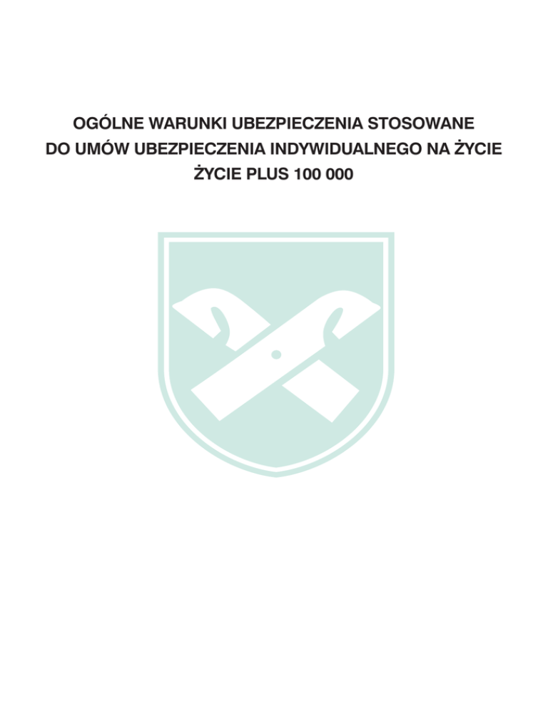 OGÓLNE WARUNKI UBEZPIECZENIA STOSOWANE DO UMÓW UBEZPIECZENIA INDYWIDUALNEGO NA ŻYCIE ŻYCIE PLUS 100 000 Spis treści Ogólne Warunki Ubezpieczenia do umów ubezpieczenia indywidualnego na życie 3 Klauzula 2 Śmierć Ubezpieczonego w następstwie nieszczęśliwego wypadku w ruchu komunikacyjnym 7 Klauzula 4 Śmierć Ubezpieczonego w następstwie nieszczęśliwego wypadku na terenie zakładu pracy 7 2z7 Ogólne Warunki Ubezpieczenia DO UMÓW UBEZPIECZENIA indywidualnego NA ŻYCIE ŻYCIE PLUS 100 000 Postanowienia ogólne §1 Konstrukcja umowy oraz przedmiot regulacji Ogólnych Warunków Ubezpieczenia 1. Niniejsze Ogólne Warunki Ubezpieczenia, zwane dalej OWU, mają zastosowanie do umów indywidualnego ubezpieczenia na życie zawieranych przez Wielkopolskie Towarzystwo Ubezpieczeń Życiowych i Rentowych Concordia Capital Spółka Akcyjna jako Ubezpieczycielem a Ubezpieczającymi. 2. Umowa ubezpieczenia może zostać zawarta na cudzy rachunek, wówczas postanowienia dotyczące Ubezpieczającego stosuje się odpowiednio do Ubezpieczonego. 3. Za zgodą stron do umowy ubezpieczenia mogą zostać wprowadzone postanowienia dodatkowe lub odmienne od ustalonych w niniejszych OWU. Warunkiem skuteczności takich postanowień jest zachowanie formy pisemnej, oraz dołączenie pełnej ich treści do umowy ubezpieczenia, pod rygorem nieważności. 4. W przypadku sprzeczności postanowień, o których mowa w ust. 3, a także klauzul dodatkowych z OWU, przyjmuje się wyższość zapisów dodatkowych, klauzul dodatkowych, zapisów odmiennych. 5. Ochrona ubezpieczeniowa może zostać udzielona w zakresie określonym w § 7 ust. 1, 2. 6. Ochrona ubezpieczeniowa udzielana jest w oparciu o postanowienia niniejszych Ogólnych Warunków Ubezpieczenia, stanowiących załącznik do umowy oraz jej integralną część. §2 Definicje i skróty Terminom użytym w umowie indywidualnego terminowego ubezpieczenia na życie (umowa ubezpieczenia) nadaje się następujące znaczenia: 1) amatorskie uprawianie sportu – działania, które nie są połączone z jakimkolwiek czerpaniem dochodu, polegające na treningach odbywających się nie częściej niż 2 razy w tygodniu w określonej dyscyplinie sportu, przy możliwym udziale w amatorskich rozgrywkach sportowych, imprezach sportowych, bez przynależności do klubów sportowych (w tym uczelnianych), związków i innych organizacji zrzeszających osoby uprawiające sport, chyba, że organizacje te zrzeszają wyłącznie amatorów lub miłośników. Definicja ta obejmuje również formy aktywności fizycznej organizowanej dla dzieci w wieku szkolnym do 15 roku życia, jeśli aktywność ta nie odbywa się częściej, niż 2 razy w tygodniu w danej dyscyplinie sportu; 2) choroba – istniejące niezależnie od woli Ubezpieczonego zaburzenia funkcjonalności organów ciała, stan, który zgodnie z wiedzą medyczną wymaga leczenia, rehabilitacji, diagnostyki, stan anormalny w funkcjonowaniu organizmu Ubezpieczonego, co do którego lekarz może postawić diagnozę; za chorobę nie uznaje się jakichkolwiek następstw nieszczęśliwych wypadków; 3) choroba przewlekła – choroba lub inwalidztwo trwające w sposób ciągły albo dające nawroty i wymagające długoterminowej opieki – lekarskiej i pielęgniarskiej. Przykładem chorób przewlekłych zgodnie z powyższą definicją są: astma oskrzelowa, mózgowe porażenie dziecięce, cukrzyca, przewlekła białaczka, padaczka, przewlekła niewydolność nerek, inne; 4) choroba psychiczna – choroba oznaczona w Międzynarodowej Statystycznej Klasyfikacji Chorób i Problemów Zdrowotnych (ICD 10) jako zaburzenie zachowania lub zaburzenie psychiczne w kodach F00 do F99; 5) choroba tropikalna – choroba powstająca przez organizmy patogenne, których występowanie jest charakterystyczne dla stref równikowych i podzwrotnikowych; 6) c z a s o w a niezdolność Ubezpieczonego do pracy – za czasową niezdolność do pracy przyjmuje się całkowitą i trwałą utratę przez Ubezpieczonego zdolności do dalszego wykonywania jakiejkolwiek pracy zawodowej lub innej działalności zawodowej w następstwie nieszczęśliwego wypadku. Podstawą do uznania przez Ubezpieczyciela zajścia czasowej niezdolności Ubezpieczonego do pracy jest orzeczenie stwierdzające całkowitą niezdolność do pracy, wydane przez działającego przy właściwym organie emerytalno – rentowym lekarza orzecznika na okres nie krótszy niż 6 miesięcy; 7) dziecko-Współubezpieczony – dziecko własne Ubezpieczonego, przysposobione lub pasierb, jeżeli nie żyje naturalny ojciec lub naturalna matka pasierba lub osoba, której Ubezpieczony jest prawnym opiekunem i sprawuje władzę rodzicielską; 8) karencja – okres liczony od dnia obejmowania Ubezpieczonego ochroną ubezpieczeniową, w którym, jeśli wystąpi zdarzenie obejmowane ochroną, Ubezpieczyciel jest wolny od odpowiedzialności. Karencja podawana jest w miesiącach, przy czym przyjmuje się, że każdy miesiąc liczy 30 dni; 9) klauzula – umowa dodatkowa, stanowiąca integralną część umowy ubezpieczenia, w której zdefiniowane jest ryzyko i zasady określające odpowiedzialność Ubezpieczyciela; 10)miesiąc – okres liczący 30 dni; 11)nieszczęśliwy wypadek – nagłe i nieoczekiwane zdarzenie wywołane przyczyną zewnętrzną, działającą niezależnie od woli Ubezpieczonego, będące bezpośrednią i wyłączną przyczyną doznania przez Ubezpieczonego wypadku ubezpieczeniowego objętego ochroną, w wyniku którego doznał on trwałego uszkodzenia ciała, rozstroju zdrowia lub zmarł. Za nieszczęśliwy wypadek nie uznaje się chorób, nawet występujących nagle (w szczególności zawału serca lub udaru mózgu) ani przeciążenia lub nadwyrężenia organizmu na skutek wykonywania powtarzalnych czynności fizycznych; 12)pojazd – środek transportu przystosowany do poruszania się po drodze, wodzie lub w powietrzu, w szczególności pojazd silnikowy w rozumieniu przepisów 