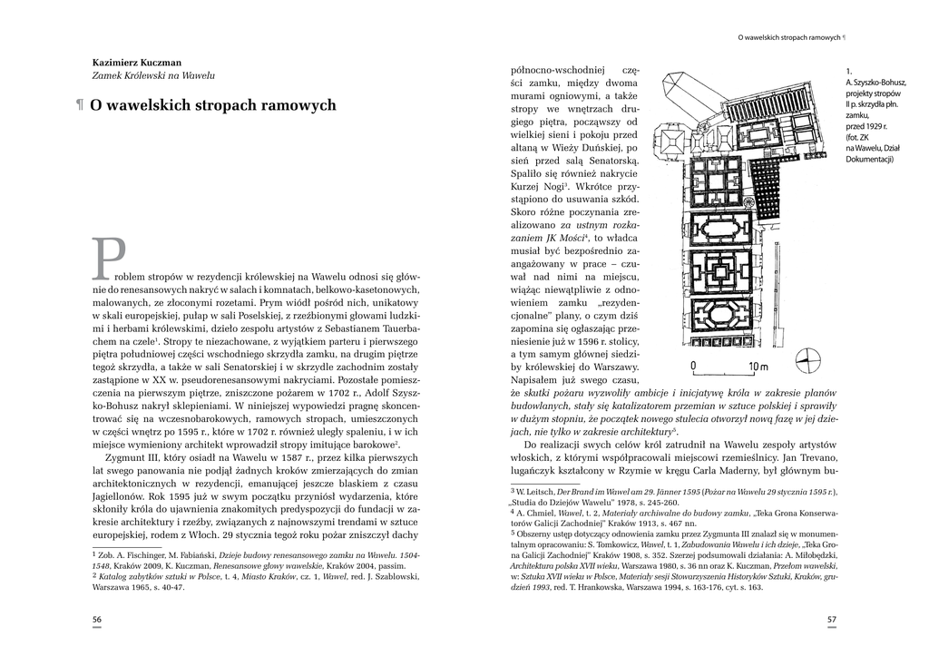O wawelskich stropach ramowych ¶ Kazimierz Kuczman Zamek Królewski na Wawelu ¶ O wawelskich stropach ramowych P roblem stropów w rezydencji królewskiej na Wawelu odnosi się głównie do renesansowych nakryć w salach i komnatach, belkowo-kasetonowych, malowanych, ze złoconymi rozetami. Prym wiódł pośród nich, unikatowy w skali europejskiej, pułap w sali Poselskiej, z rzeźbionymi głowami ludzkimi i herbami królewskimi, dzieło zespołu artystów z Sebastianem Tauerbachem na czele1. Stropy te niezachowane, z wyjątkiem parteru i pierwszego piętra południowej części wschodniego skrzydła zamku, na drugim piętrze tegoż skrzydła, a także w sali Senatorskiej i w skrzydle zachodnim zostały zastąpione w XX w. pseudorenesansowymi nakryciami. Pozostałe pomieszczenia na pierwszym piętrze, zniszczone pożarem w 1702 r., Adolf Szyszko-Bohusz nakrył sklepieniami. W niniejszej wypowiedzi pragnę skoncentrować się na wczesnobarokowych, ramowych stropach, umieszczonych w części wnętrz po 1595 r., które w 1702 r. również uległy spaleniu, i w ich miejsce wymieniony architekt wprowadził stropy imitujące barokowe2. Zygmunt III, który osiadł na Wawelu w 1587 r., przez kilka pierwszych lat swego panowania nie podjął żadnych kroków zmierzających do zmian architektonicznych w rezydencji, emanującej jeszcze blaskiem z czasu Jagiellonów. Rok 1595 już w swym początku przyniósł wydarzenia, które skłoniły króla do ujawnienia znakomitych predyspozycji do fundacji w zakresie architektury i rzeźby, związanych z najnowszymi trendami w sztuce europejskiej, rodem z Włoch. 29 stycznia tegoż roku pożar zniszczył dachy 1 Zob. A. Fischinger, M. Fabiański, Dzieje budowy renesansowego zamku na Wawelu. 15041548, Kraków 2009, K. Kuczman, Renesansowe głowy wawelskie, Kraków 2004, passim. 2 Katalog zabytków sztuki w Polsce, t. 4, Miasto Kraków, cz. 1, Wawel, red. J. Szablowski, Warszawa 1965, s. 40-47. 56 północno-wschodniej części zamku, między dwoma murami ogniowymi, a także stropy we wnętrzach drugiego piętra, począwszy od wielkiej sieni i pokoju przed altaną w Wieży Duńskiej, po sień przed salą Senatorską. Spaliło się również nakrycie Kurzej Nogi3. Wkrótce przystąpiono do usuwania szkód. Skoro różne poczynania zrealizowano za ustnym rozkazaniem JK Mości4, to władca musiał być bezpośrednio zaangażowany w prace – czuwał nad nimi na miejscu, wiążąc niewątpliwie z odnowieniem zamku „rezydencjonalne” plany, o czym dziś zapomina się ogłaszając przeniesienie już w 1596 r. stolicy, a tym samym głównej siedziby królewskiej do Warszawy. Napisałem już swego czasu, że skutki pożaru wyzwoliły ambicje i inicjatywę króla w zakresie planów budowlanych, stały się katalizatorem przemian w sztuce polskiej i sprawiły w dużym stopniu, że początek nowego stulecia otworzył nową fazę w jej dziejach, nie tylko w zakresie architektury5. Do realizacji swych celów król zatrudnił na Wawelu zespoły artystów włoskich, z którymi współpracowali miejscowi rzemieślnicy. Jan Trevano, lugańczyk kształcony w Rzymie w kręgu Carla Maderny, był głównym bu3 W. Leitsch, Der Brand im Wawel am 29. Jänner 1595 (Pożar na Wawelu 29 stycznia 1595 r.), „Studia do Dziejów Wawelu” 1978, s. 245-260. 4 A. Chmiel, Wawel, t. 2, Materiały archiwalne do budowy zamku, „Teka Grona Konserwatorów Galicji Zachodniej” Kraków 1913, s. 467 nn. 5 Obszerny ustęp dotyczący odnowienia zamku przez Zygmunta III znalazł się w monumentalnym opracowaniu: S. Tomkowicz, Wawel, t. 1, Zabudowania Wawelu i ich dzieje, „Teka Grona Galicji Zachodniej” Kraków 1908, s. 352. Szerzej podsumowali działania: A. Miłobędzki, Architektura polska XVII wieku, Warszawa 1980, s. 36 nn oraz K. Kuczman, Przełom wawelski, w: Sztuka XVII wieku w Polsce, Materiały sesji Stowarzyszenia Historyków Sztuki, Kraków, grudzień 1993, red. T. Hrankowska, Warszawa 1994, s. 163-176, cyt. s. 163. 57 1. A. Szyszko-Bohusz, projekty stropów II p. skrzydła płn. zamku, przed 1929 r. (fot. ZK na Wawelu, Dział Dokumentacji) ¶ 2. A. SzyszkoBohusz, projekty stropów w Kurzej Stopce, przed 1929 r. (Fot. ZK na Wawelu, Dział Dokumentacji) Kazimierz Kuczman downiczym, z którym współpracowali jego ziomkowie: Jan Chrzciciel Petrini i Ambroży Meazi (Meazzi). Projektu Jana Trevana jest klatka schodowa Senatorska, kaplica królewska, wieża mieszkalna zw. Zygmunta III, marmurowe portale „uszate” z herbami Wazów oraz kominki, wśród nich najokazalszy w sali Pod Ptakami. Jemu też należałoby przypisać zaprojektowanie stiuków w kaplicy i pomieszczeniach w wieży zw. Zygmunta III, mających wyraźnie rzymską genezę6. Stropy musiały odgrywać dużą rolę w dekoracji architektoniczno-rzeźbiarsko-malarskiej wnętrz zamkowych7. Co dziś o nich wiemy? Źródła archiwalne nie podają szczegółowych informacji, z danych zawartych w rewizjach zamku można jednak wyciągnąć ogólne wnioski o ich charakterze. I tak, w rewizji z 1665 r. w sali Pod Orłem odnotowano: Podniebienie malowane złociste, rzezane, z orłem we środku […], pod tem podniebieniem obrazy malowane równo z oknami. W sali Pod Ptakami wskazano: podniebienie malowane razem z ptakami, rozmaitemi figurami, niektóre miejscami obrazy w stropie malowane, nieco dalej zamieszczając nieco szerszą informację: podniebienie malowane razem z ptakami, rozmaitemi figurami, niektóre miejscami obrazy w stropie malowane8. We wnętrzach przed altaną i w altanie były też: podniebienia malowane w ramach złocistych, w tym jedno w ramach okrągłych i kwadratowych9. Informacje te poszerza nieco, o ilość plafonów w poszczególnych stropach, rewizja z 1692 r. I tak, w sieni za izbą Senatorską naliczono w podniebieniu obrazów trzynaście10, a w sieni przed salą Pod Ptakami wymieniono: podniebienie z malowanymi obrazy, których jest dziesięć. W samej zaś sali Pod Ptakami odnotowano: Nade drzwiami drut