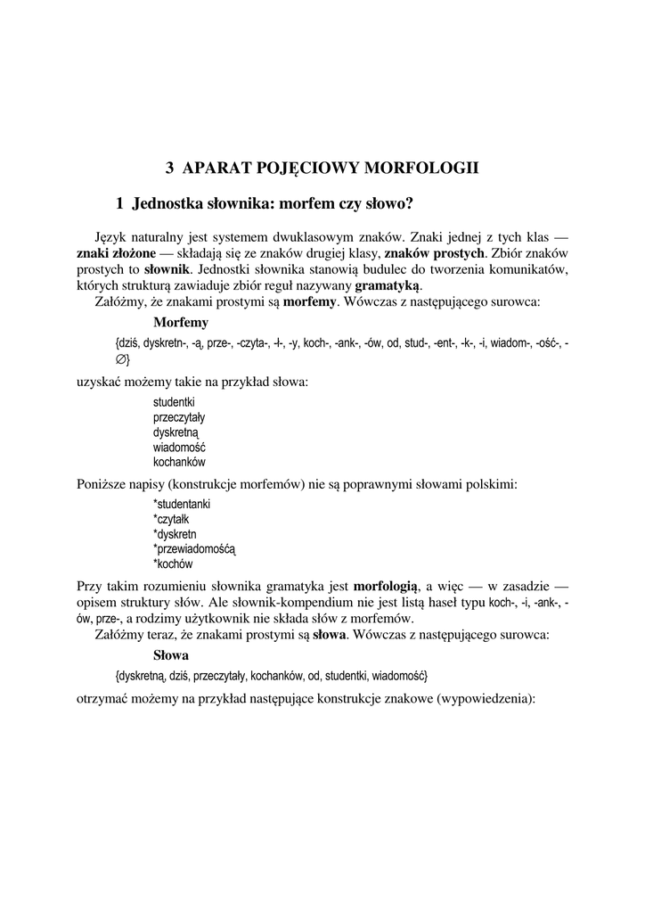 3 APARAT POJĘCIOWY MORFOLOGII 1 Jednostka słownika