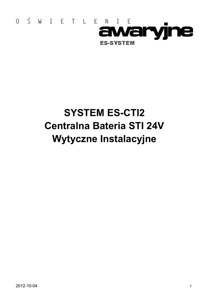SYSTEM ES-CTI2 Centralna Bateria STI 24V Wytyczne Instalacyjne