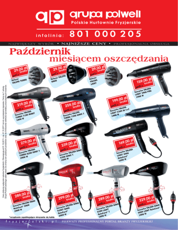 • NAJNIŻSZE CENY • PROFESJONALNA OBSŁUGA N A J W I ĘK S Z Y W Y B Ó R Październik miesiącem oszczędzania 35,01 35,01 zł zł 35,01 A ALER zor V 0 zł 219,0brutto zł or Dyfuz A R E VAL T LIGH Dyfu NANO or Dyfuz A TURBO R VALE Ceny dotyczą wyłącznie salonów fryzjerskich. Obowiązują od 01.10.2011 r. do o 31.10.2011 3 31 lub do wyczerpania zapasów. Cena za 1 sztukę. az do do limitowania wielkości sprzedaży poszczególnych towarów. Grupa Polwell zastrzega sobie prawo do zmiany cen podanych produktów oraz zł 29,0b0rutto zł 29,0b0rutto zł 29,0b0rutto 0 zł 159,0brutto 0 185,0 0 zł 199,0brutto 0 zł 259,0brutto 0 zł 0 zł A ALER cT rka V ISusza 5300 AV T LIGH W 1800 285,0 A ALER rka V AVANT a z s u S 00 O 71 TURB W 0 180 A ALER rka V PRO a z s u S 0 T 300 LIGH W 0 160 235,0 0 zł 255,0 zł A ALER IC T rka V N Susza 7200 IO O B R U T W 1800 -15% 0 zł 279,0brutto 0 zł 325,0 A ALER IC T rka V N Susza 8200 IO O B R TU W 2000 0 zł 289,0brutto ,00 zł 305 A ALER rka V Susza rd* 9000 o RotoC W 0 0 0 2 NANO *urządzenie zapobiegające skręcaniu się kabla 0 zł 169,0brutto 0 zł 239,0 utto 0 zł 285,0 br 0 zł 205,0 A ALER rka V a z s u S 0 T 300 LIGH rd* o C Roto W 1600 NO A NA ALER rka V Susza ONIC T I 6200 W 0 0 18 0 zł 299,0brutto 5 375,3 zł ANO ERA N a VAL k r a z IC Sus T ION 9200 rd* o RotoC W 2000 0 zł 289,0brutto 0 zł 325,0 A ALER rka V Susza IGHT L 6200 rd* T o C o t o R W 0 0 18 NANO 0 zł 229,0brutto 0 275,0 zł NO A NA ALER Cord* V a k r o Susza IGHT Rot L 6000 W 1800 • NAJNIŻSZE CENY • PROFESJONALNA OBSŁUGA N A J W I ĘK S Z Y W Y B Ó R Październik miesiącem oszczędzania zł 3,00utto zł 4,0b0rutto br zł 5,01 Ceny dotyczą wyłącznie salonów fryzjerskich. Obowiązują od 01.10.2011 r. do 31.10.2011 lub do wyczerpania zapasów. Cena za 1 sztukę. Grupa Polwell zastrzega sobie prawo do zmiany cen podanych produktów oraz do limitowania wielkości sprzedaży poszczególnych towarów. b o far lek d Pędze R GL ASS AI COM lny a m r no 7,00 b o far LUE lek d B Pędze R GL ASS AI COM lny a norm zł 4,0b0rutto 6,00 zł 3,0b0rutto zł b o far lek d Pędze R GL ASS AI COM ieniem eb z r g z 4,00 rb zł 9,0b0rutto br zł 11,00 AIR m i COM Wałk ałej 17 m w do tr e czarn AIR i rkam i COM Wałk ałej z dziu e n w do tr biało-zielo 6 mm ,00 zł ,00 zł o brutt ł 3,51 z zł b o far lek d SS e z d ę A P L AIR G COM ki o r e - sz zł 3,00 tto bru j a fr yz Gąbk as - zap erska farb 8,00 b o far zka d Misec R GL ASS AI COM ,00 zł 8 b o far lek d Pędze R GL ASS AI COM U L B E i k szero 19 tka Szczo RNEW I A COM tr dwus na -czar zł 6,0b0rutto 8,00 wka Karkó R SILVER AI COM a ż du AIR i rkam i COM Wałk ałej z dziu e w w do tr biało-różo 7 mm zł 9,0b0rutto brut zł ałej o tr w AIR d , M O ie iC Wałk niebiesk m e 11 m czer won m m 0 1 zł 7,0b0rutto o AIR d i COM m k ł a W m ej 8 tr wał żółte zł 8,0b0rutto zł ej tr wał R do er wone, I A M z o-c i CO Wałk niebiesk ółte m -ż 11 m czer wono m m 9 zł 7,0b0rutto 8,00 zł o AIR d i COM Wałk krótkie z ach r ej tr wał w rozmia m m ką r 3 u i 1 z d o mm d od 6 zł 9,0b0rutto zł 10,00 R OMAI tka C o z c z S a tronn dwus a n czar AIR i rkam i COM Wałk ałej z dziu e w w o r do t żółto-róż 8 mm 9,00 MAIR ek CO Czep y wiązany rb do fa k z s a d e 9,00 zł 13,51 8 zł 8,0b0rutto zł 11,00 8,00 zł 9,9b0rutto zł 7,00 to ,00 zł zł AIR i COM Wałk ałej w do tr białe m m e 6 różow 7 mm zł br zł 19,0b0rutto ,50 zł 1 105,0 zł 7,00utto zł 8,00 b o far zka d SS BLUE c e s i M LA AIR G COM zł 99,0b0rutto brut zł 15,01 zł AIR i COM Wałk ałej w do tr bordowe m m e 3 zielon 5mm zł 5,00 to zł 3,0b0rutto o lek d Pędze R I A COM lny a -norm 6 ł 3,51 z R MAI ka CO w Karkó zł 6,00utto 5 brut zł 55,01 o fa lek d Pędze R AI COM i k szero zł 15,01 zł 39,00 to bru zł 6,00 zł b o far lek d Pędze R AI COM ieniem eb z r g z zł 4,00 tto 8,00 zł zł 9,0b0rutto zł 5,0b0rutto zł 9,0b0rutto zł AIR m i COM Wałk ałej 13 m w do tr siwe zł 29,0b0rutto 35,01 zł M. zowy ch CO Fartu rb jednora a f - do t 25 sz
