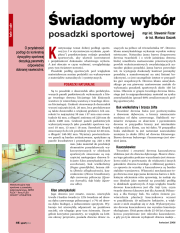 halei ibiznes sale sport Âwiadomy wybór posadzki sportowej O przydatnoÊci pod∏ogi do konkretnej dyscypliny sportowej decydujà parametry odpowiednio dobranej nawierzchni. K ontynuujàc temat dobrej pod∏ogi sportowej (cz. I w styczniowym wydaniu „sportplusa”) przedstawiamy rodzaje posadzek sportowych, aby u∏atwiç inwestorowi i projektantowi dokonanie w∏aÊciwego wyboru. A jest obecnie w czym wybieraç, uwzgl´dniajàc przy tym Êwiatowe nowoÊci. Posadzki pod∏óg sportowych pod wzgl´dem materia∏owym mo˝na podzieliç na wykonywane z materia∏ów naturalnych i syntetycznych. POSADZKI NATURALNE Wielofunkcyjna hala sportowa z posadzkà polipropylenowà AERO FLEX™ firmy FLEX COURT® ATHLETICS 46 sportplus Sà to posadzki z deszczu∏ek albo prefabrykowanych paneli parkietowych wykonanych z litego twardego drewna liÊciastego lub klejonych warstwo (z wierzchnià warstwà z twardego drewna liÊciastego). GruboÊç stosowanych deszczu∏ek wynosi najcz´Êciej ok. 20 mm, lecz produkowane sà tak˝e deszczu∏ki o wi´kszej gruboÊci. Ich szerokoÊç to najcz´Êciej 38 mm i 57 mm oraz ewentualnie 82 mm, a d∏ugoÊç zmienna od 228 mm do oko∏o 2400 mm. GruboÊç paneli parkietowych wykorzystywanych jako posadzki sportowe wynosi 10 mm, 13 mm i 18 mm. SzerokoÊç klepek stosowanych do ich produkcji wynosi 22-28 mm, a d∏ugoÊç 140-302 mm. Wymiary powierzchniowe paneli sà bardzo zró˝nicowane, spotykane sà panele kwadratowe i prostokàtne np. 228 x 456 mm. Jako materia∏ do produkcji elementów posadzkowych wykorzystywanych w obiektach sportowych stosowane sà najcz´Êciej nast´pujàce drzewa liÊciaste: klon amerykaƒski (Acer saccharum), buk wielkolistny (Fagus grandifolia), brzoza ˝ó∏ta (Betula alleghaniensis), kauczukowiec (Hevea brasiliensis), dàb czerwony pó∏nocny (Quercus borealis), dàb bia∏y (Quercus alba). Klon amerykaƒski Jego drewno jest zwarte, mocne, niezwykle trwa∏e i bardzo twarde (o 12% twardsze od drewna d´bu czerwonego pó∏nocnego i o 7% od drewna d´bu bia∏ego), a jednoczeÊnie spr´˝yste. Wykazuje te˝ niezwyk∏à odpornoÊç na punktowe naciski, nie ulegajàc przy tym Êcieraniu. Szczególnie korzystne parametry, ze wzgl´du na krótsze okresy przyrostu, posiada drewno drzew ro- mgr in˝. S∏awomir Fiszer dr in˝. Mariusz Gaczek snàcych na pó∏noc od równole˝nika 35°. Drewno klonu amerykaƒskiego wykazuje wysokie walory estetyczne. Naturalna jasna barwa (bràzowawa drewna twardzieli i o wiele jaÊniejsza drewna bielu) umo˝liwia zastosowanie przezroczystych pow∏ok wykoƒczeniowych uwydatniajàcych naturalne pi´kno posadzki. Jasna barwa powoduje te˝, ˝e wyst´puje doskona∏y kontrast pomi´dzy posadzkà a namalowanymi na niej liniami boiskowymi, co jest szczególnie istotne w przypadku gier zespo∏owych. Drewno klonu amerykaƒskiego po raz pierwszy zastosowane zosta∏o do wykonania posadzek sportowych oko∏o 150 lat temu. Obecnie w grupie twardego drewna liÊciastego jest to najpopularniejszy materia∏ na rynku amerykaƒskim (ponad 60% zrealizowanych pod∏óg sportowych). Buk wielkolistny i brzoza ˝ó∏ta TwardoÊç drewna buku jest porównywalna z drewnem d´bowym, a brzozy nieznacznie mniejsza od d´bu czerwonego. StabilnoÊç wymiarów zwiàzana ze skurczem i p´cznieniem drewna w przypadku brzozy jest minimalnie wi´ksza ni˝ u klonu, czy te˝ d´bu. W przypadku buku stabilnoÊç ta jest natomiast zauwa˝alnie mniejsza (o oko∏o 20%) od drewna klonowego. Barwa drewna bukowego i brzozowego jest równie˝ jasna. Kauczukowiec TwardoÊç i zwartoÊç drewna kauczukowca zbli˝ona jest do drewna d´bowego. Skurcz drewna tego gatunku podczas wysychania jest stosunkowo niski w porównaniu do wi´kszoÊci innych gatunków drewna twardego o zbli˝onej g´stoÊci, co sprawia ˝e wyroby z kauczukowca sà bardzo stabilne wymiarowo. W∏asnoÊci mechaniczne tego drewna oraz jego jasna kremowa barwa z delikatnym odcieniem ró˝u sprawiajà, ˝e nadaje si´ ono idealnie jako materia∏ na posadzki pod∏óg w obiektach sportowych. Z tego wzgl´du twarde drewno kauczukowca jest dla Azji tym, czym twarde drewno klonowe jest dla Ameryki Pó∏nocnej, a dla Europy buk. Na ca∏ym Êwiecie powierzchnia plantacji kauczukowca wynosi w przybli˝eniu 10 milionów hektarów, a wi´kszoÊç z nich znajduje si´ w Azji. Wykorzystywanie drewna kauczukowca ma wyraêne konotacje ekologiczne. Otó˝ przez oko∏o 25-30 lat z kauczukowca pozyskiwane jest mleczko kauczukowe, a gdy po tym okresie wydajnoÊç drzewa maleje – kwiecieƒ 2006 Szkolna hala sportowa z nawierzchnià z p∏ytek polipropylenowych MultiSport firmy IceCourt® wycina si´ je i sadzi nowe drzewa na plantacji. Tak wi´c wyroby z drewna kauczukowca sà swego rodzaju „produkcjà ubocznà”. Dàb czerwony pó∏nocny i dàb bia∏y Drewno tych odmian d´bu niewiele ust´puje drewnu klonowemu pod wzgl´dem twardoÊci i nieznacznie pod wzgl´dem stabilnoÊci wymiarów. Wyraênie ciemniejsza barwa drewna d´bowego (w przypadku d´bu czerwonego niejednolita w zakresie od jasnego ró˝u do ciemnego czerwonawego bràzu) w porównaniu z ww. gatunkami drewna twardego, nieco gorsze parametry techniczno-u˝ytkowe oraz ograniczona iloÊç jego zasobów sprawia, ˝e jest ono rzadziej stosowane przy produkcji elementów posadzek sportowych. Obecnie klon amerykaƒski w grupie twardego drewna liÊciastego jest najpopularniejszym materia∏em na rynku amerykaƒskim (ponad 60% zrealizowanych pod∏óg sportowych). POSADZKI SYNTETYCZNE To stosowane powszechnie posadzki z wyk∏adzin lub p∏ytek z PCW oraz wylewane posadzki z mas poliuretanowych. Spotykane sà równie˝ bardziej specjalistyczne posadzki wykonywane z przetworzonego tworzywa gumowego (rulony i p∏ytki) oraz posadzki z tworzywa polipropylenowego (p∏ytki), a tak˝e wylewane posadzki z ˝ywic akrylowych. Specyficznà podgrup´ posadzek syntetycznych tworzà posadzki wykonywane z materia∏ów naturalnych o ró˝nym 