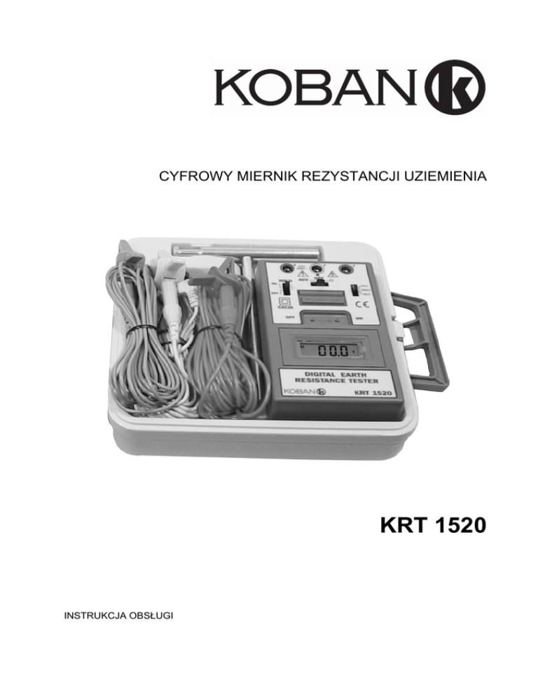 CYFROWY MIERNIK REZYSTANCJI UZIEMIENIA KRT 1520 INSTRUKCJA OBSŁUGI Cyfrowy miernik rezystancji uziemienia SPIS TREŚCI 1 2 3 4 5 6 WSTĘP .................................................................................................................................3 BEZPIECZEŃSTWO UŻYTKOWANIA .................................................................................3 CECHY UŻYTKOWE ............................................................................................................4 DANE TECHNICZNE ............................................................................................................4 TECHNIKI POMIAROWE......................................................................................................5 KONSERWACJA ..................................................................................................................6 1. Gniazdo wejściowe dla połączenia „EARTH” 2. Wskaźnik działania 3. Przełącznik trybu Data Hold 4. Przycisk wyłączania czasomierza (Timer) 5. Wyświetlacz LCD 6. Gniazdo wejściowe dla połączenia „LINE” 7. Przełącznik funkcji pomiarowej 8. Przełącznik zakresu dla pomiaru rezystancji 9. Przycisk włączający pomiar (PUSH-ON) 10. Przycisk włączania czasomierza (Timer) 2 1 WSTĘP Miernik został zaprojektowany i zbadany zgodnie z wymaganiami normy IEC 348, wymaganiami bezpieczeństwa elektrycznych przyrządów pomiarowych, normy IEC-1010 (EN61010) i innych norm bezpieczeństwa. Należy przestrzegać wszystkich ostrzeżeń w celu zapewnienia bezpieczeństwa użytkowania. Ostrzeżenie: 2 • • • • Przed użyciem miernika należy przeczytać rozdział BEZPIECZEŃSTWO UŻYTKOWANIA. BEZPIECZEŃSTWO UŻYTKOWANIA Przed przystąpieniem do użycia lub konserwacji miernika należy uważnie przeczytać poniższe zasady bezpiecznego użytkowania. Miernika należy używać tylko zgodnie z zaleceniami zawartymi w niniejszej instrukcji obsługi, w przeciwnym wypadku pogorszy się stopień ochrony, jaką miernik zapewnia użytkownikowi. Znamionowe parametry środowiskowe: 1. Do użytku wnętrzowego 2. Kategoria instalacji III 3. Stopień zanieczyszczenia 2 4. Wysokość do 2000 m 5. Wilgotność względna maksymalnie 80 % 6. Temperatura otoczenia 0-40 °C Zwracać uwagę na międzynarodowe symbole elektryczne przedstawione poniżej. Miernik jest chroniony przez podwójną izolację lub wzmocnioną izolację. Ostrzeżenie! Niebezpieczeństwo porażenia prądem elektrycznym Uwaga! Zob. w instrukcji obsługi − − − Przed otwarciem obudowy miernika odłączyć przewody pomiarowe, aby uniknąć porażenia prądem elektrycznym. Nie przekraczać napięcia 200 V AC w przyrządzie 3 fazowym Nie przykładać napięcia pomiędzy gniazda COM i OHM. 3 Cyfrowy miernik rezystancji uziemienia 3 • • CECHY UŻYTKOWE • • Przyrząd mierzy napięcie pomiarowe Prąd probierczy 2mA umożliwia pomiar rezystancji uziemienia nie powodując zadziałania wyłącznika wykrywającego prąd upływu. Zasilanie bateryjne. Funkcja automatycznego wyłączania zasilania. Czasomierz (Timer) wyłącza miernik automatycznie po ok. 3-6 min od chwili jednoczesnego naciśnięcia przycisków „PUSHBUTTON SWITCH” i „TIMER ON BUTTON”. Funkcja zatrzymania odczytu (Data hold) Przyrząd jest niewielki oraz lekki. • Zaprojektowany aby spełniać wymagania normy bezpieczeństwa IEC-1010 (EN61010). • • 4 DANE TECHNICZNE Metoda pomiarowa: Pomiar rezystancji prądem o stałej wartości ok. 820Hz, 2mA Napięcie pomiarowe: 0-200V AC, 40-500Hz Rezystancja uziemienia Zakres i rozdzielczość 0-20 om (0,01 om) 0-200 om (0,1 om) 0-2000 om (1 om) Dokładność Napięcie pomiarowe +/- (1%odczytu + 2cyfry) Rezystancja uziemienia +/- (2%dczytu + 2cyfry) lub +/- 0,1 Ω, który jest większy Norma bezpieczeństwa IEC-1010(EN61010), kategoria instalacji III Sygnalizacja rozładowanej baterii Symbol „B” pojawia się na wyświetlaczu Sygnalizacja trybu Data Hold Symbol „DH” pojawia się na wyświetlaczu Sygnalizacja przekroczenia zakresu „1” (MSD) Automatyczne wyłączanie zasilania ok. 3-6 min Wyświetlacz LCD 3 1/2 cyfry (maksymalne wskazanie 2000) Zasilanie 6 szt. baterii 1,5V (R6P) Wymiary 163 x 100 x 50 mm Waga ok. 800g (włącznie z baterią) Wyposażenie Przewody pomiarowe (czerwony – 15M, żółty – 10M, zielony – 5M), dodatkowe sondy pomiarowe, futerał, instrukcja obsługi. 4 5 TECHNIKI POMIAROWE PRZED PRZYSTĄPIENIEM DO WYKONYWANIA POMIARÓW NALEŻY PRZECZYTAĆ ROZDZIAŁ BEZPIECZEŃSTWO UŻYTKOWANIA NA STRONIE 3. 1. Podłączenie przewodów pomiarowych: Podłączyć zielony, żółty i czerwony przewód pomiarowy do gniazd wejściowych E, P i C przyrządu oraz do pomocniczych sond P1 i C1, które należy wbić w ziemię W LINI PROSTEJ (Rys 1) 2. Ustawić przełącznik funkcji na pozycję ACV i upewnić się, że napięcie odczytane z wyświetlacza jest MNIEJSZE NIŻ 10V AC, w przeciwnym wypadku dokładny pomiar rezystancji uziemiania nie będzie możliwy. 3. Ustawić przełącznik zakresów na odpowiedni zakres oraz przełącznik funkcji na pozycję Ω, następnie nacisnąć jednocześnie przyciski PUSH-ON BUTTON oraz TIMER ON BUTTON i odczytać wartość rezystancji uziemienia z wyświetlacza. * Na wyświetlaczu pojawi się 300-800 (dla funkcji Ω, zakres 2kΩ) jeżeli żadne z gniazd wejściowych E, P i C nie jest połączone z przewodami pomiarowymi. 5 Cyfrowy miernik rezystancji uziemienia 6 • KONSERWACJA Wymiana baterii: Baterię należy wymienić, gdy na wyświetlaczu pojawi się symbol “B”, zgodnie z poniższą procedurą: 1. Odłączyć przewody pomiarowe od przyrządu i wyłączyć zasilanie. 2. Przy pomocy śrubokręta wykręcić wkręt z tylnej obudowy miernika, wyjąć baterie i wymienić na nowe typu SUM-3. 3. Przykręcić obudowę wkrętem. • Czyszczenie i przechowywanie: OSTRZEŻENIE Woda nie może dostać się do obudowy miernika, aby nie spowodować porażenia prądem i uszkodzenia miernika. Okr