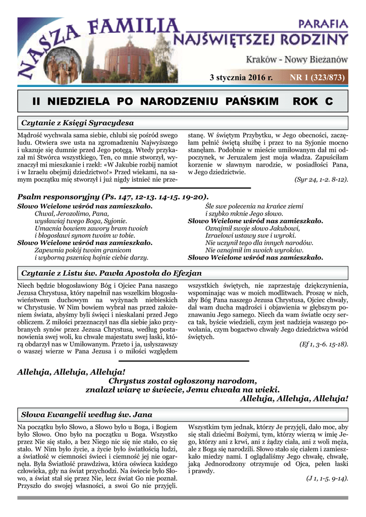 3 stycznia 2016 - Sanktuarium Najświętszej Rodziny