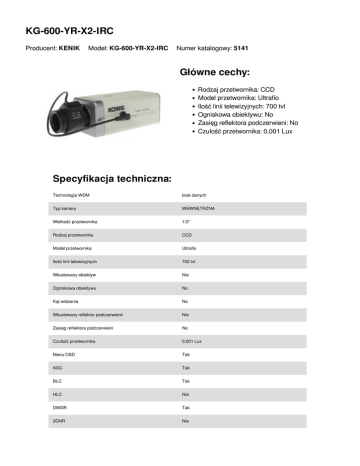 KG-600-YR-X2-IRC Główne cechy: Specyfikacja techniczna