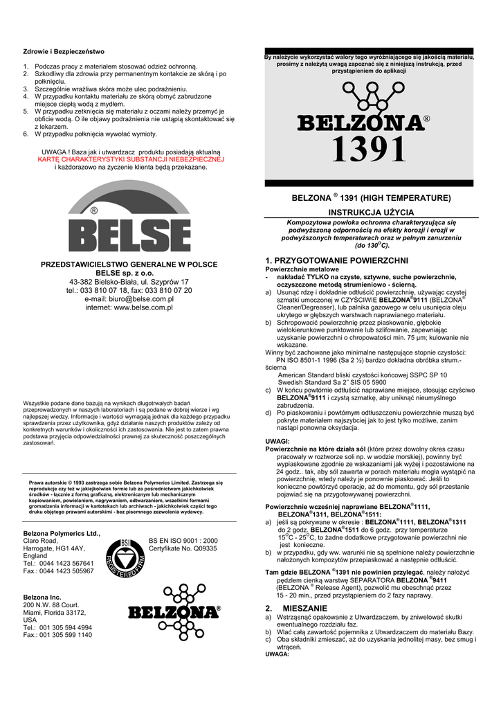 belzona ® 1391 (high temperature) instrukcja użycia 1