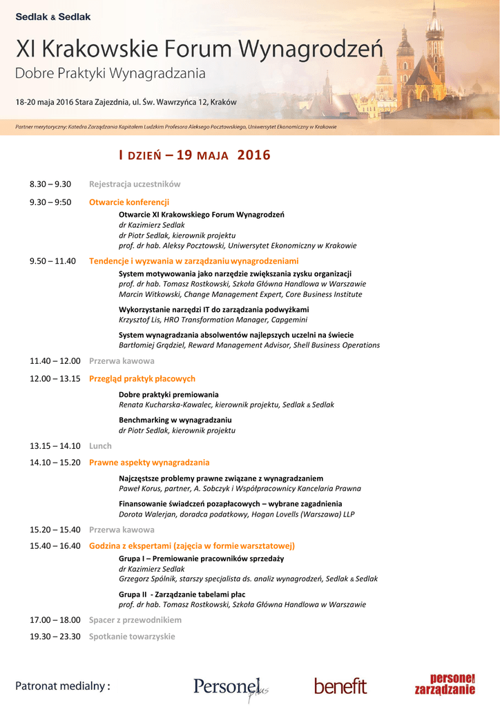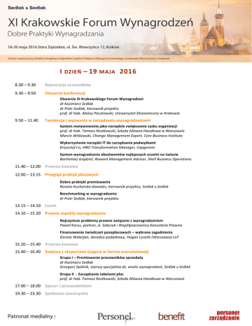 i dzień – 19 maja 2016 - Krakowskie Forum Wynagrodzeń
